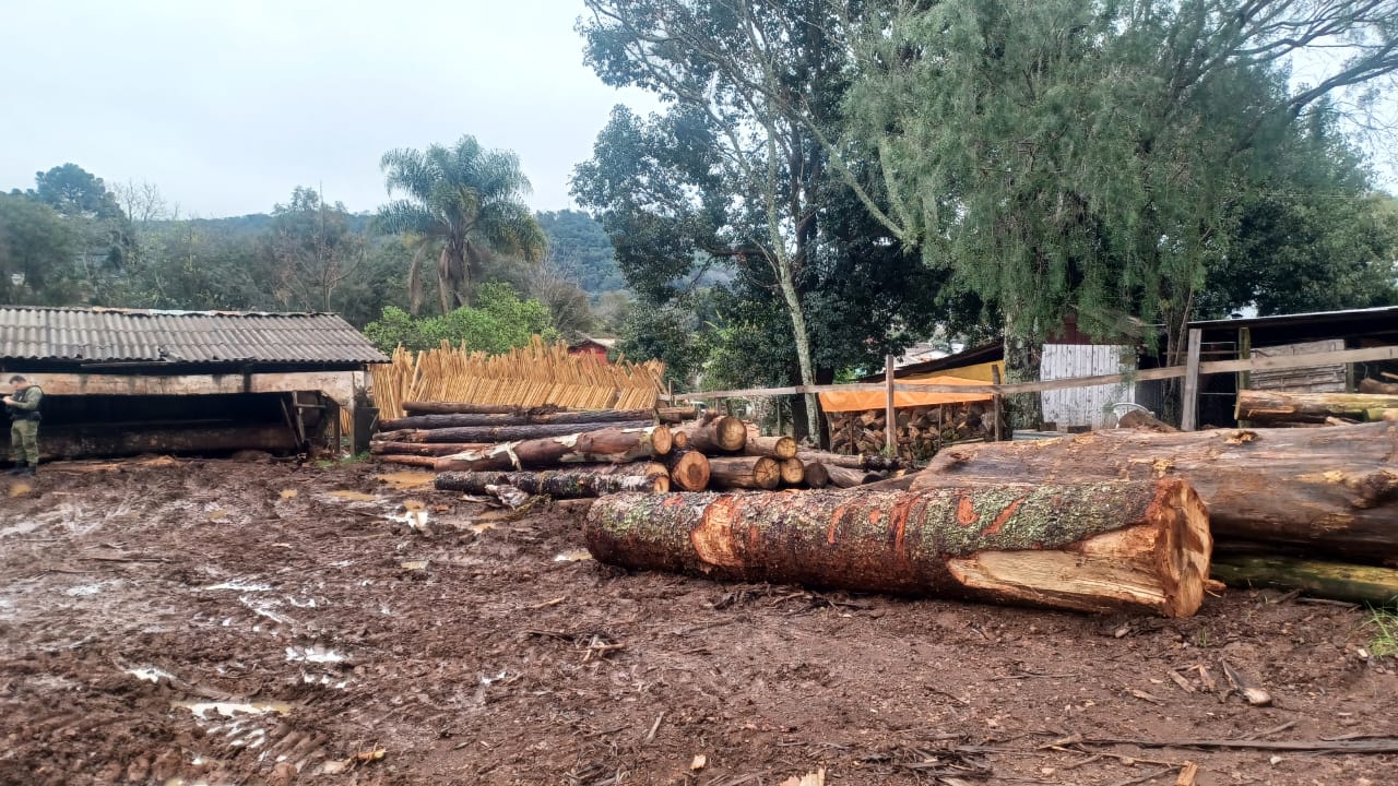 Nesta segunda-feira (01/10), a Guarnição Policial da 2ªCIA INDEPENDENTE da Brigada Militar do Grupamento Ambiental de São José do Ouro atendeu ocorrência de crime contra a flora no interior de Cacique Doble. Após atendimento solicitação de denúncia da FEPAM a guarnição constatou depósito e recebimento de 11 toras de Araucária angustifolia. Efetuado levantamento dendrométrico, verificou volume total das toras, totalizando 10,9524 metros cúbicos de madeira. Foi identificado o proprietário da madeireira, que informou não possuía Documento de Origem Florestal (DOF) sendo apreendida a madeira. O proprietário não apresentou Licença Operação da madeireira. Diante dos fatos foi Confeccionado Comunicação de Ocorrência Policial, por Crime Contra Flora e exercer atividade sem licença.