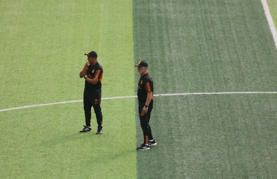Na tarde de quarta-feira, antes do treino no Cocrodilo Sports Park, complexo do Caracas, Mano Menezes conversou com o vice de futebol Felipe Becker por alguns minutos na parte externa do hotel.