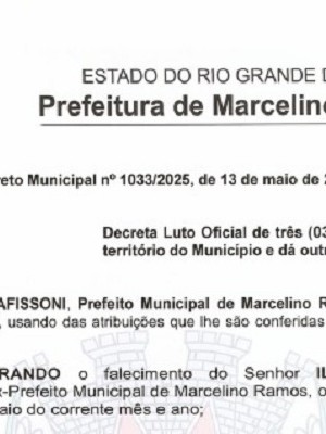 Município de Marcelino Ramos decreta luto oficial de três dias pelo