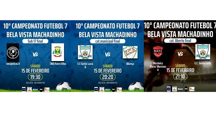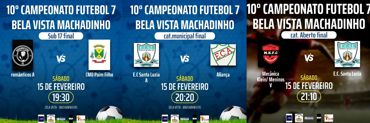 Agora, as grandes finais acontecerão no dia 1º de março e toda a comunidade está convidada a prestigiar as emocionantes disputas, pelos títulos das categorias Sub-17, Municipal e Aberto. A programação inicia às 19h30, com a final do Sub-17, onde Românticos A, enfrenta o CMD de Paim Filho. Em seguida, será a vez da final da categoria municipal, com o confronto entre Esporte Clube Santa Luzia e Aliança. Para encerrar a noite de decisões, às 21h10, acontece a grande final da categoria aberto, onde a equipe Mecânica Klein/Meninos da Vila, duela com o Esporte Clube Santa Luzia.