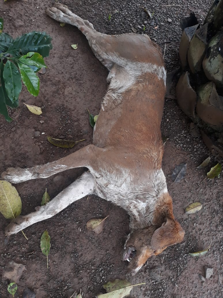 Pessoal da Linha Coqueiro (Linha Pinheirinho), tomem cuidado com os animais de vocês, quem fez uma vez, pode fazer de novo, pois, com os nossos cachorros já é a terceira vez, e o TIGRE, não recebeu esse veneno longe, foi aqui por perto, mas infelizmente não temos prova. Mas quem fez, pode ter certeza que Deus sabe de tudo!”