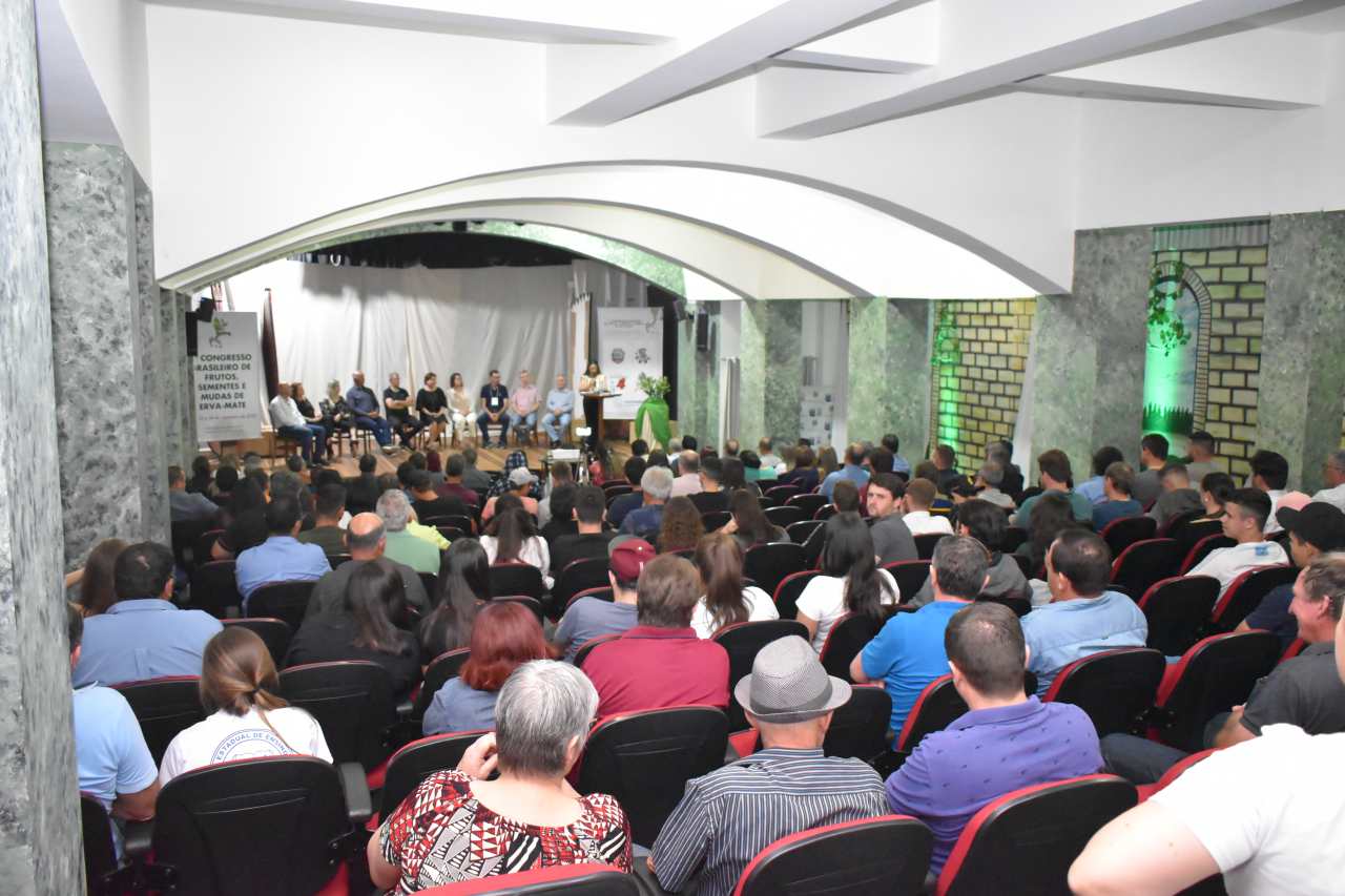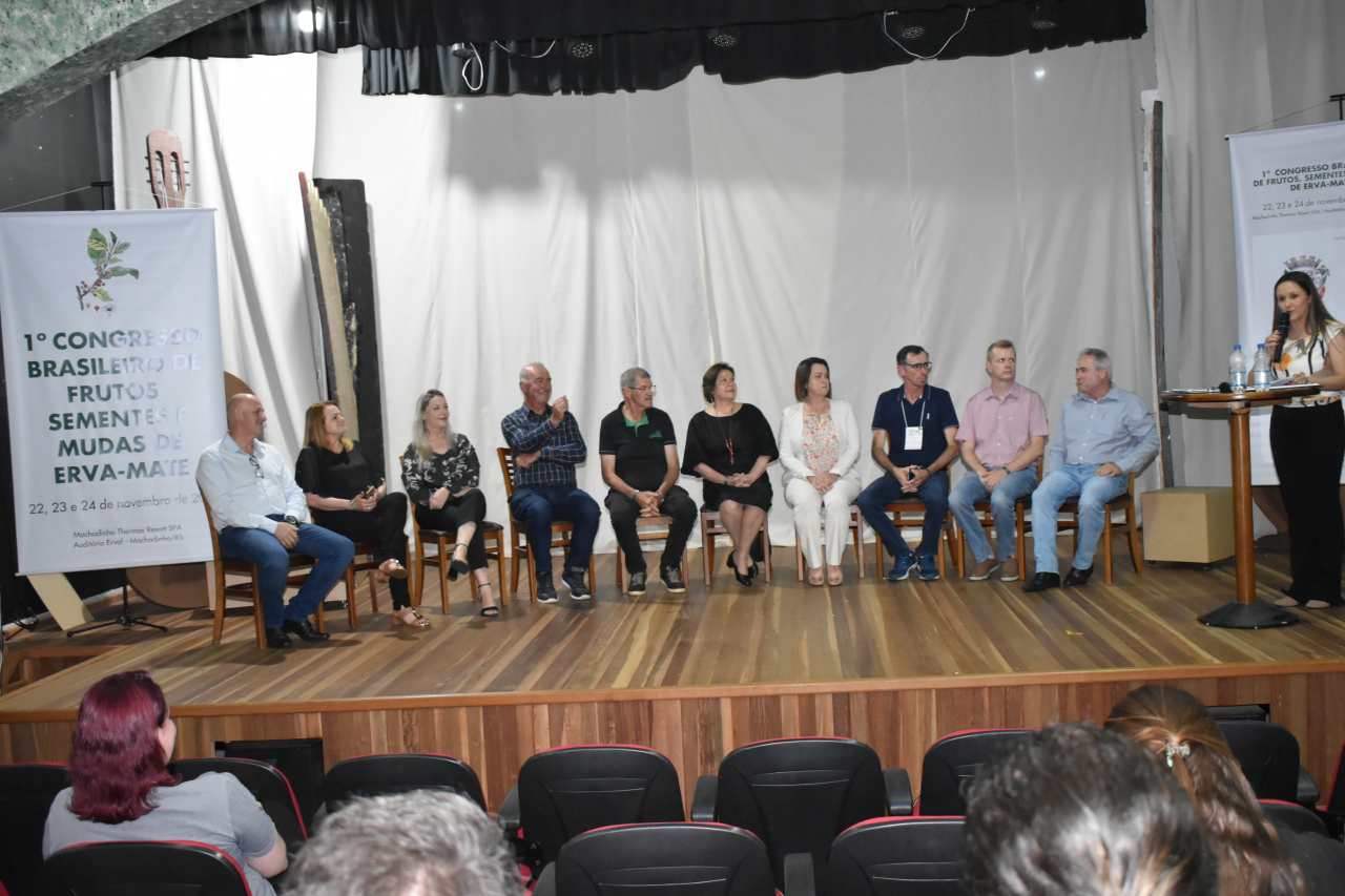 Com representantes de cerca de 40 municípios, do Rio Grande do Sul, Santa Catarina, Paraná e também do Paraguai, iniciou nesta terça-feira (22/11) e segue até quinta-feira (24/11), o 1º Congresso Brasileiro de Frutos, Sementes e Mudas de Erva-mate. O evento está sendo realizado no Auditório Erval, do Machadinho Thermas Resort Spa, no município de Machadinho. A abertura oficial aconteceu na noite de terça-feira com a presença de autoridades e o espetáculo musical “José Medes, o seresteiro dos pampas”, que retrata a vida do cantor e compositor, apresentado pelo Grupo Aldeia Teatral. Durante a abertura oficial foi informada a data do 2º Congresso, que será de 25 a 27 de novembro de 2025.