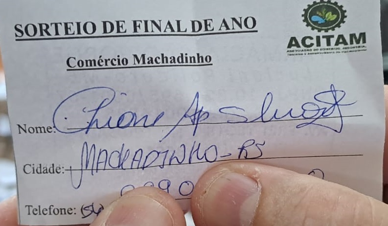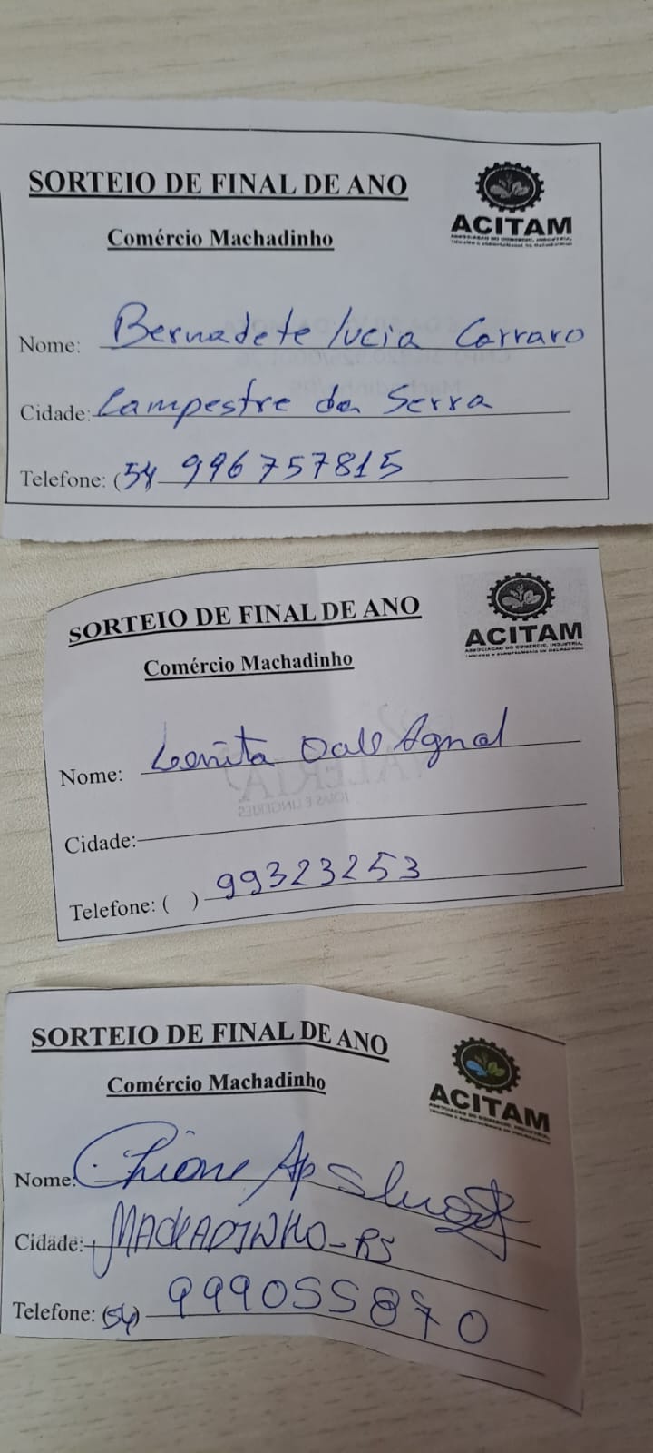 A ACITAM (Associação do Comércio, Indústria, Turismo e Agricultura de Machadinho) celebrou nesta quarta-feira, 03 de janeiro de 2024, o sorteio da promoção “Premiação de Final de Ano ACITAM”, ocorrido na sala da associação, situada no subsolo da Prefeitura municipal.