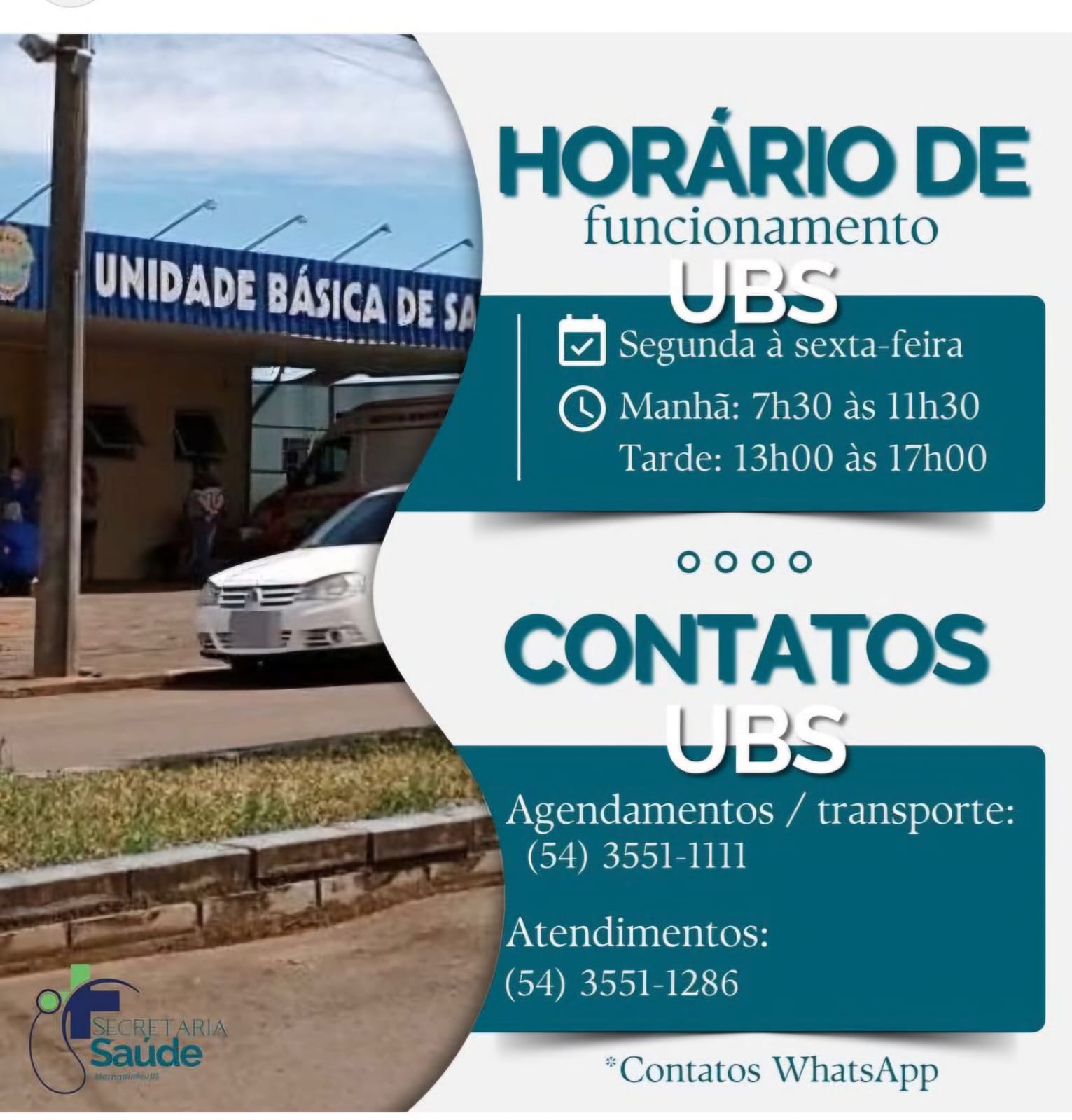 A Unidade Básica de Saúde (UBS) de Machadinho informa à população os horários de funcionamento e os canais de contato disponíveis para facilitar o acesso aos serviços de saúde e garantir um atendimento mais ágil e eficiente.