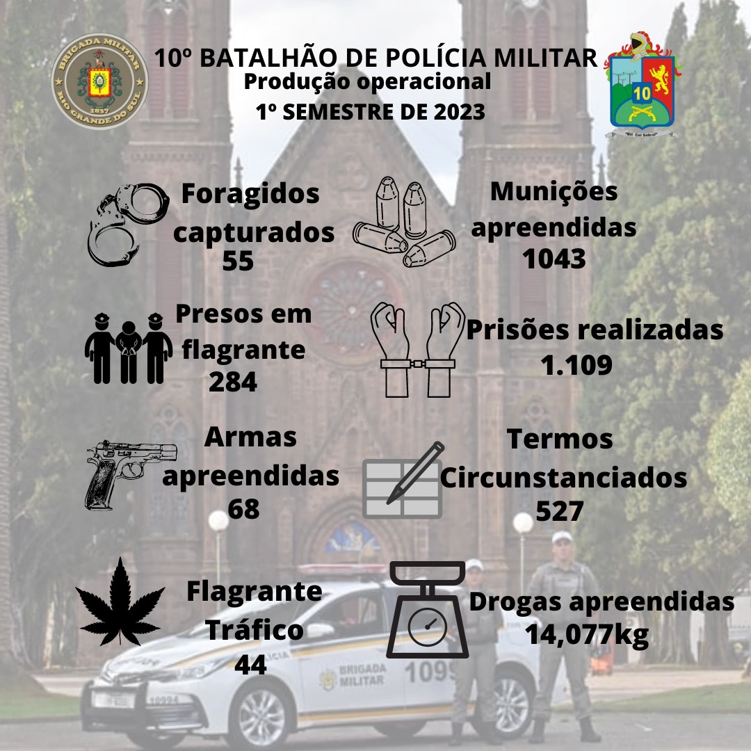 A BRIGADA MILITAR ATRAVÉS DO 10° BATALHÃO DE POLICIA MILITAR DIVULGA BALANÇO DO 1° SEMESTRE DE 2023