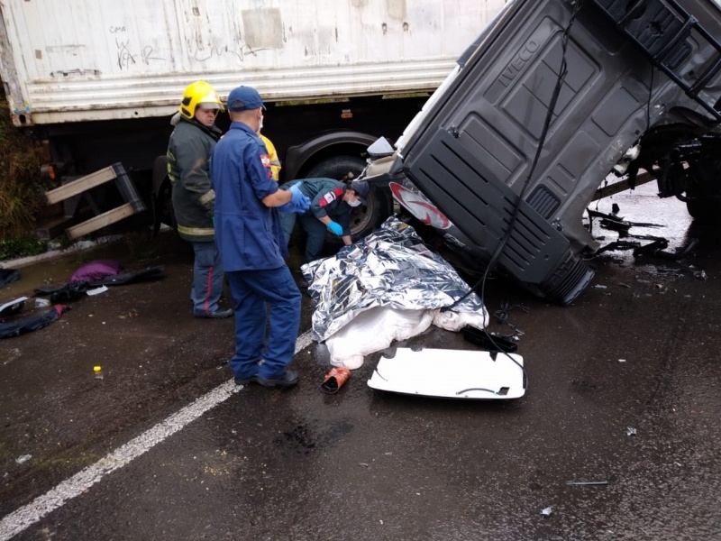 Conforme o Corpo de Bombeiros, chegando ao local foi constatado uma colisão frontal/lateral. O condutor do veículo com placas do Rio Grande Sul, de 37 anos, nada sofreu. Já o motorista da carreta de Capinzal, Josiel Cristhian Mallmann, de 24 anos, foi a óbito no local.