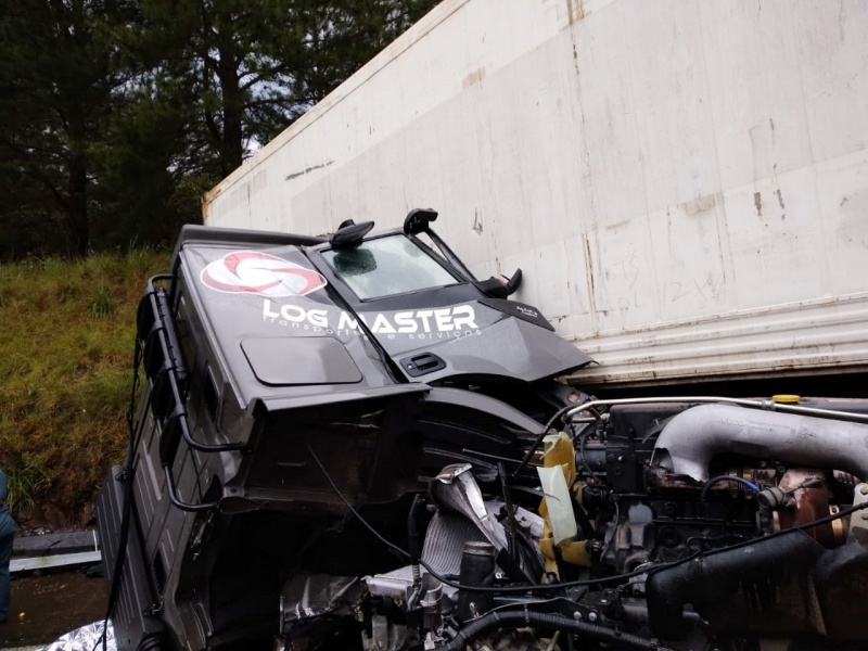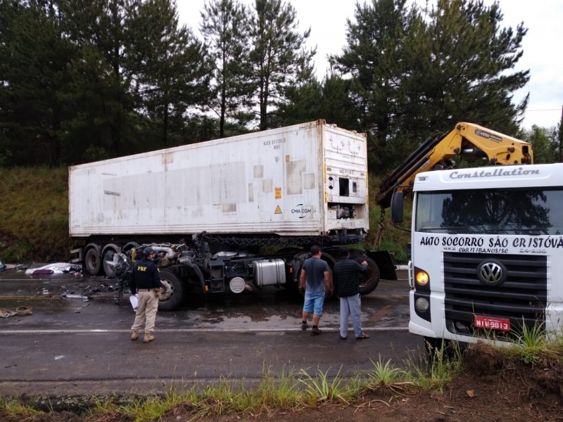 Com a colisão a cabine da carreta de Capinzal ficou completamente destruída e o condutor estava fora do veículo sem os sinais vitais. O outro veículo estava fora da pista de rolamento com alguns danos na cabine.