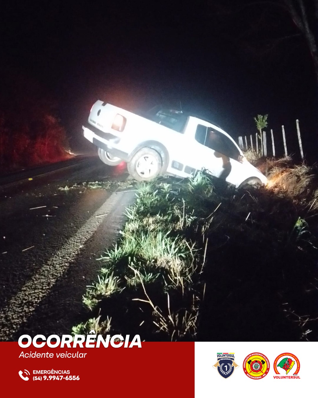 Na noite de sábado, 23 de agosto de 2025, por volta das 19h30, uma ocorrência de acidente veicular foi registrada na ERS-208. O plantão dos bombeiros foi acionado por terceiros após a saída de pista de um automóvel.