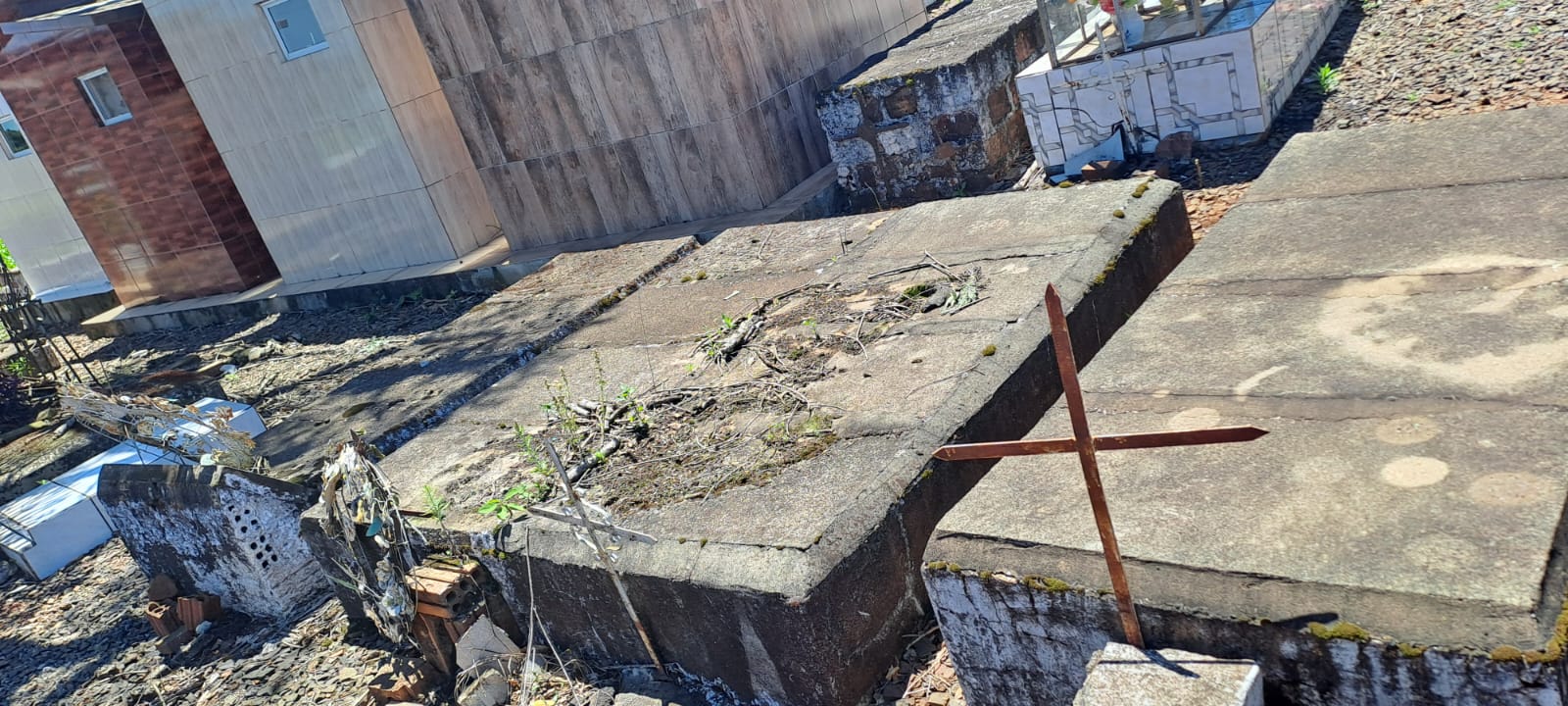 No entanto, a situação de abandono de algumas sepulturas também chama a atenção. Há jazigos com rachaduras e danos visíveis, e em alguns casos, estruturas abertas, expondo restos de caixões e outros materiais — uma cena que demonstra descuido e desrespeito com o espaço e com a memória daqueles que ali foram sepultados.