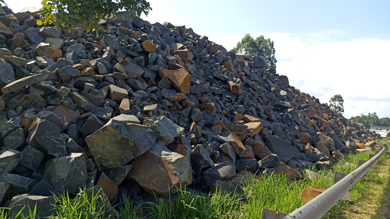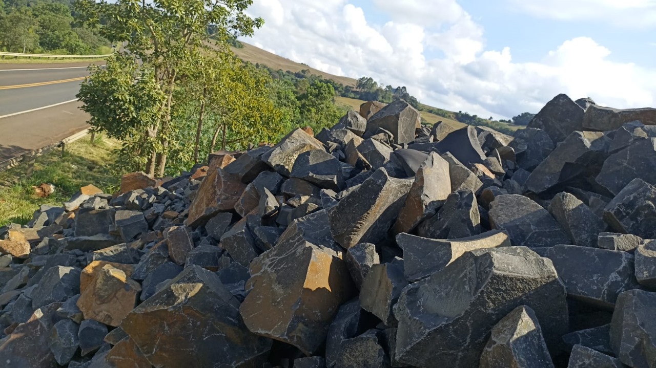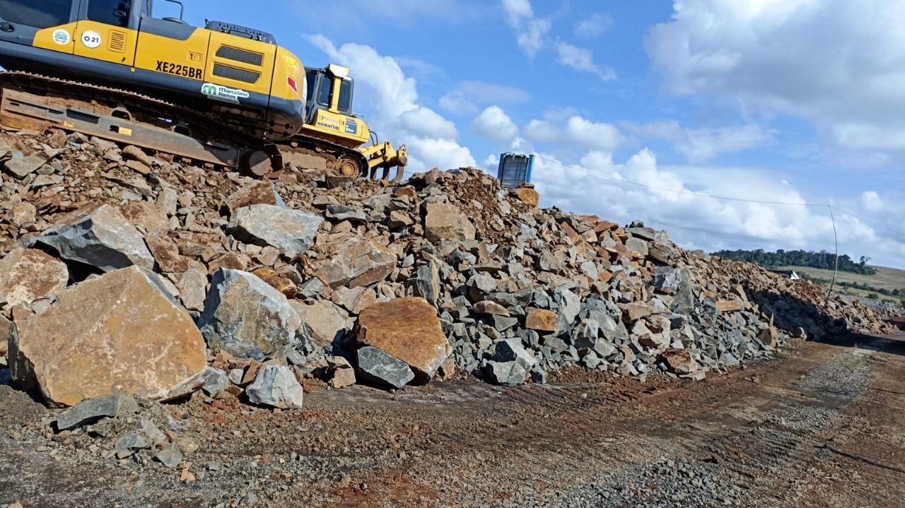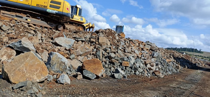 Este material, composto por mais de 36 mil metros cúbicos de pedras, equivalente a aproximadamente 100 mil toneladas, representa um recurso inestimável para os projetos de infraestrutura viária da região. Estrategicamente depositado em um terreno adjacente à rodovia, o material já está sendo processado por meio do novo britador móvel que chegou ao município na última sexta-feira. A quantidade expressiva de material, estimado em mais de 5 mil cargas de caminhão, será muito importante para as obras de recuperação e manutenção de estradas.