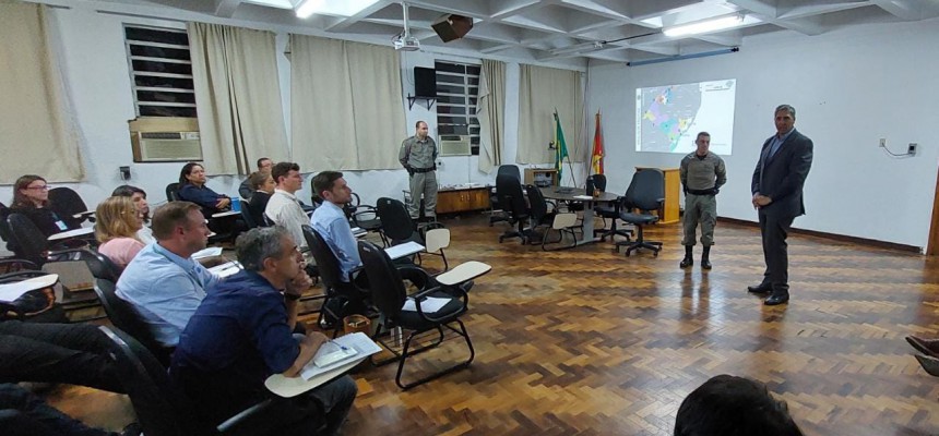 O subcomandante-geral da Brigada Militar, coronel Douglas da Rosa Soares, apresentou nesta segunda-feira (26/06) informações sobre a Operação Agro Hórus e planejamento de ações para o mês de julho. O objetivo é alinhar estratégias com os Programas Sentinela e Guaritas, da Secretaria da Agricultura, Pecuária, Produção Sustentável e Irrigação (Seapi). Assistiram à apresentação os supervisores das 15 regionais da Secretaria da Agricultura.