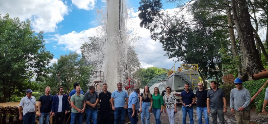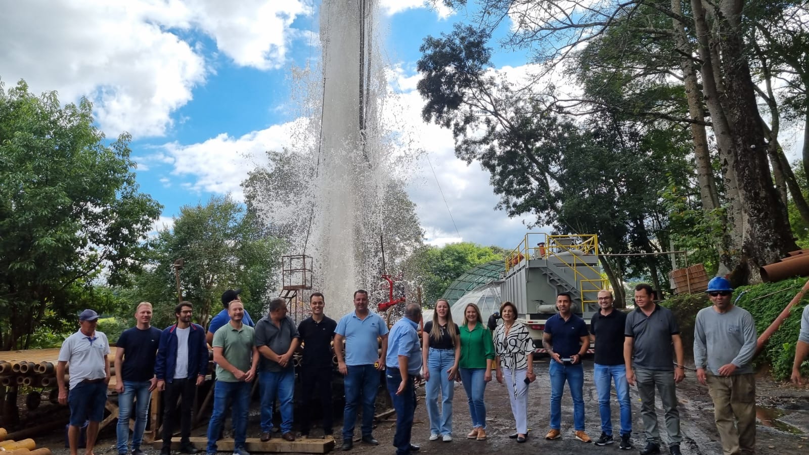 As águas termais já estão imergindo da terra em uma nova fonte nas Termas Piratuba. O anúncio é do diretor-presidente, Joelson Medeiros, que oficializou a conclusão do novo poço do parque, em um ato oficial.