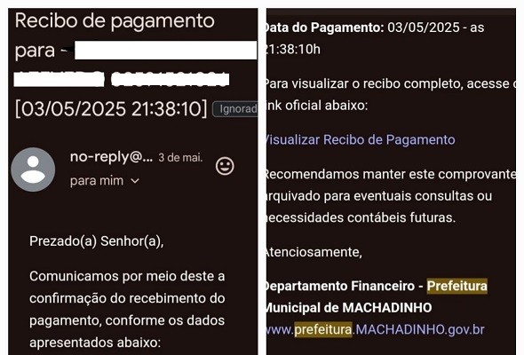A Prefeitura de Machadinho, por meio de seu Setor de Tributos, alerta a população sobre um golpe que vem sendo aplicado por criminosos que utilizam o nome da administração municipal para enganar empresas e contribuintes do município.