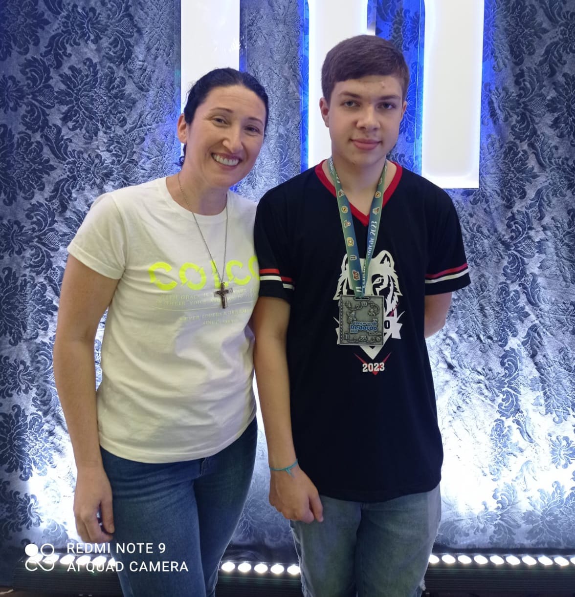 Na foto abaixo, Marlon aparece juntamente com sua professora, Nediane Betiato Pieri.