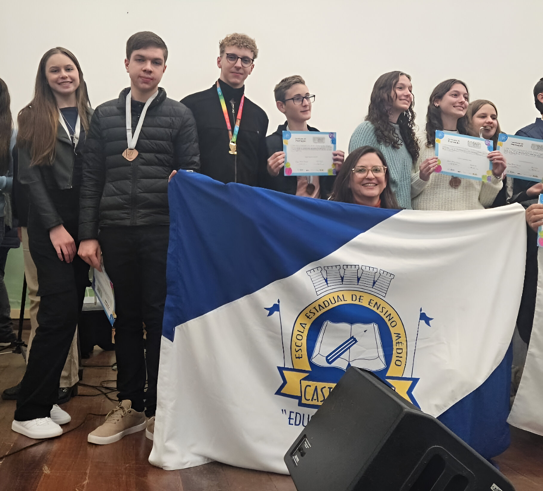 O excelente desempenho dos alunos também rendeu reconhecimento à própria Escola Castro Alves, que foi uma das Escolas Públicas Premiadas da 19ª OBMEP. A instituição foi representada na cerimônia pela diretora Lisiane Ventura Furlanetto, destacando a importância do incentivo à educação de qualidade e ao protagonismo estudantil.