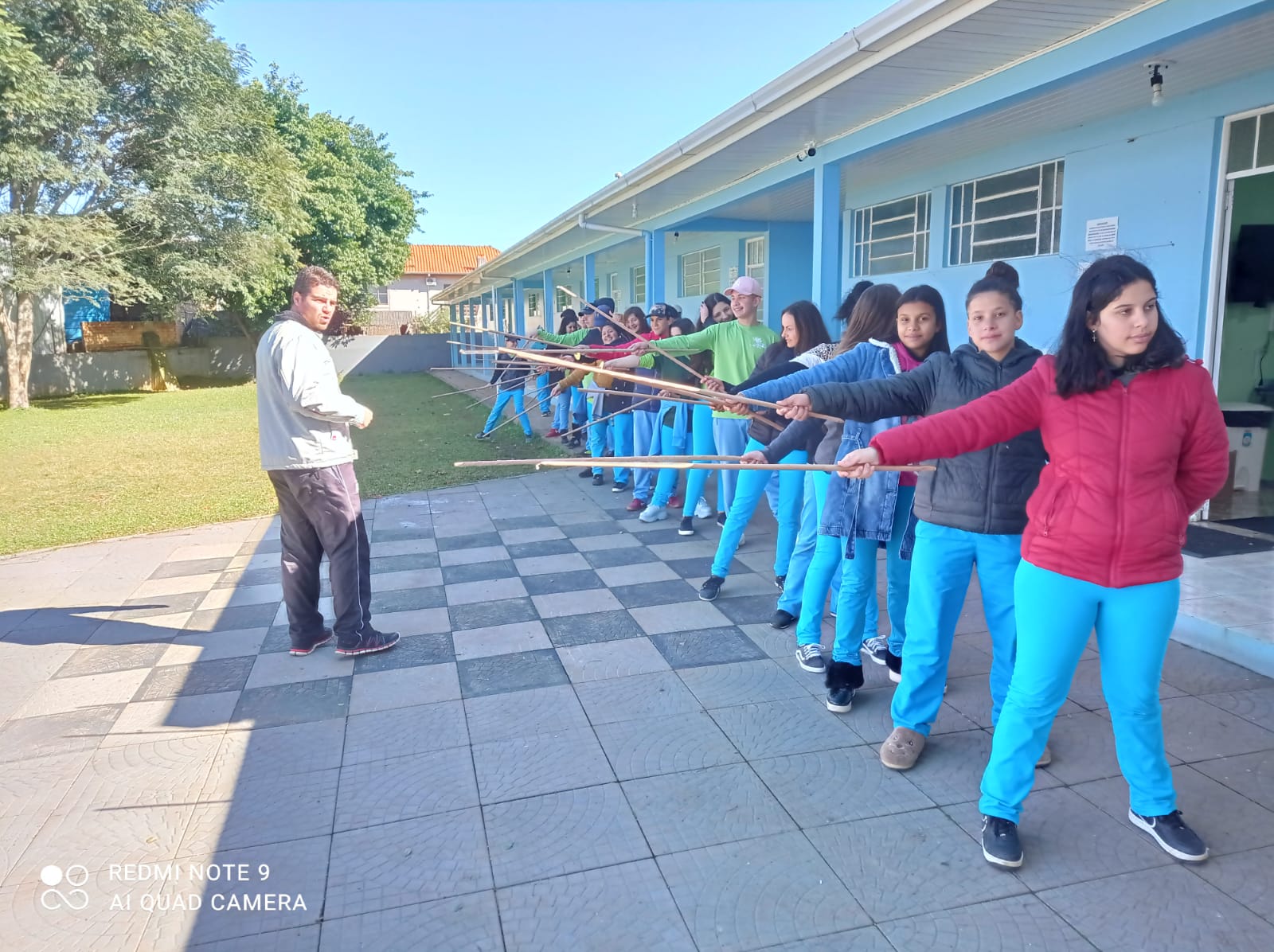 Nas aulas de Educação Física os alunos do 8º ano da Escola, estão aprendendo sobre esgrima e regras da modalidade, assim como tiveram a oportunidade de confeccionar sua própria espada utilizando como material o papel parto.