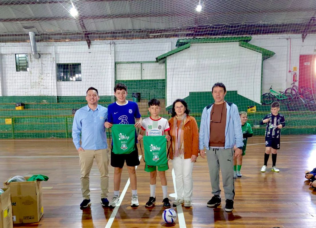 Alunos da Escolinha de Futsal e Vôlei recebem mochilas da @log!