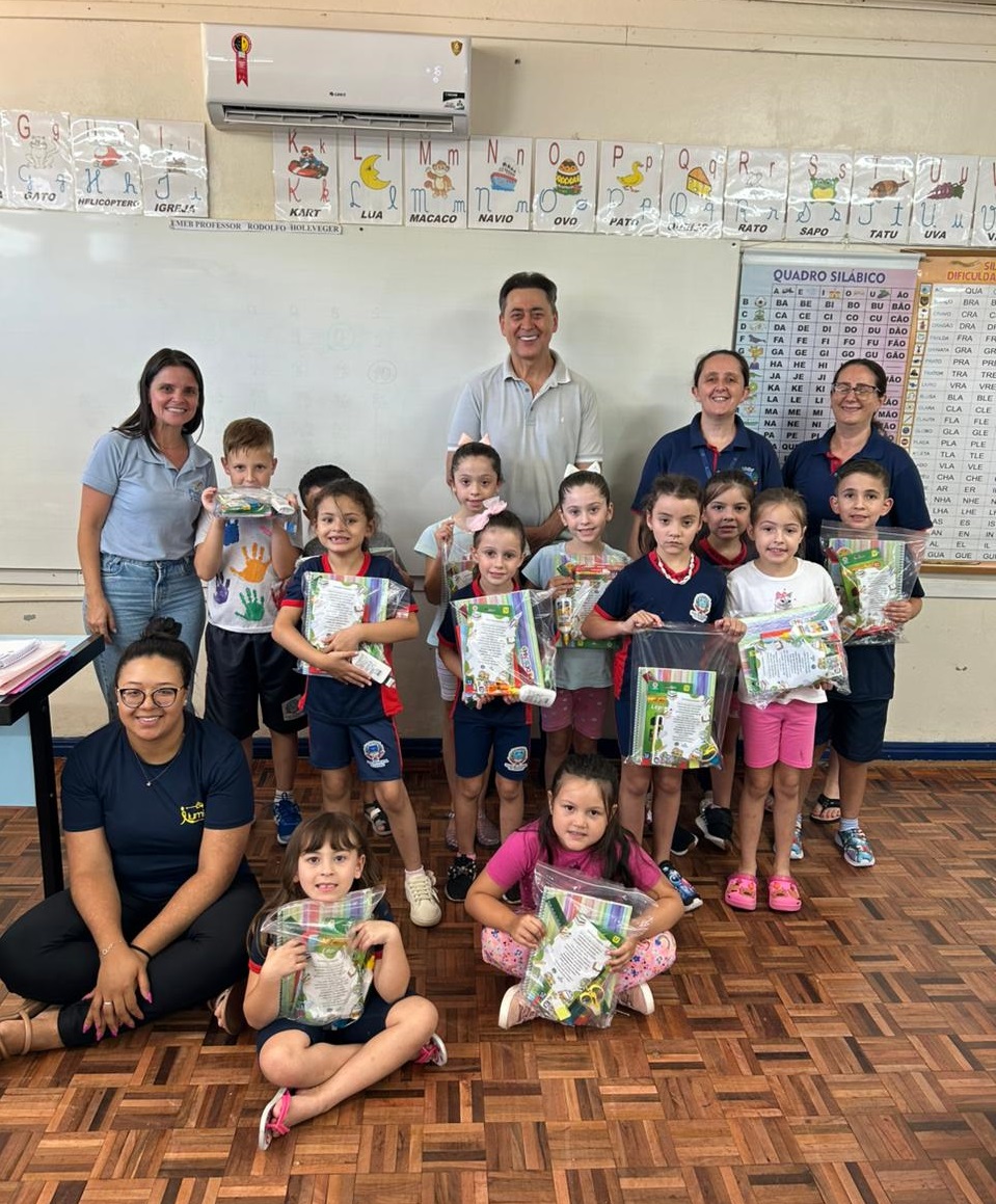 Os alunos da Educação Infantil e do Ensino Fundamental foram contemplados, com kits organizados de acordo com a faixa etária e as necessidades de cada etapa escolar.