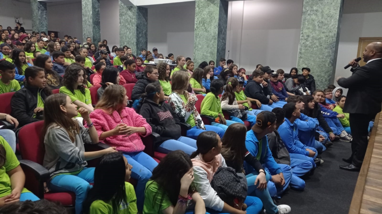 O evento promovido pelo COMDICA em parceria com a Secretária Municipal de Educação e Escola Estadual Castro Alves foi realizado no auditório do Machadinho Thermas Resort Spa, acompanharam o encontro a direção e professores das escolas envolvidas com a iniciativa.