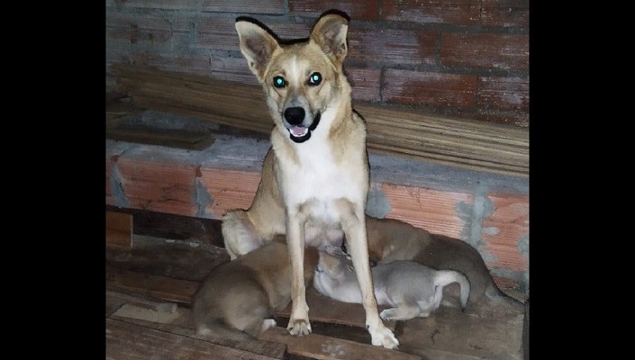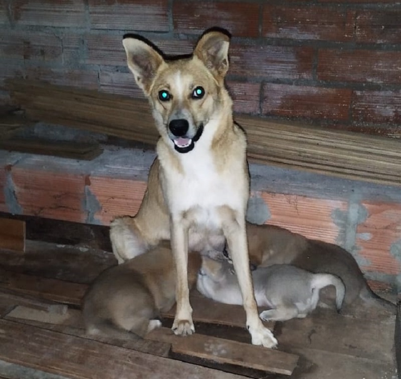 Mais um retrato das injustiças que infelizmente ainda vemos no mundo: esta cadelinha de rua, mesmo em meio às dificuldades, trouxe ao mundo três filhotes lindos e saudáveis. Agora, todos precisam de uma oportunidade — um lar, alimento e carinho.