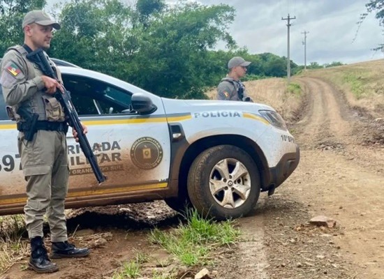 Um cerco policial está em andamento, e a Brigada Militar continua as buscas pelos criminosos, incentivando a população a fornecer informações por meio do número 190.
