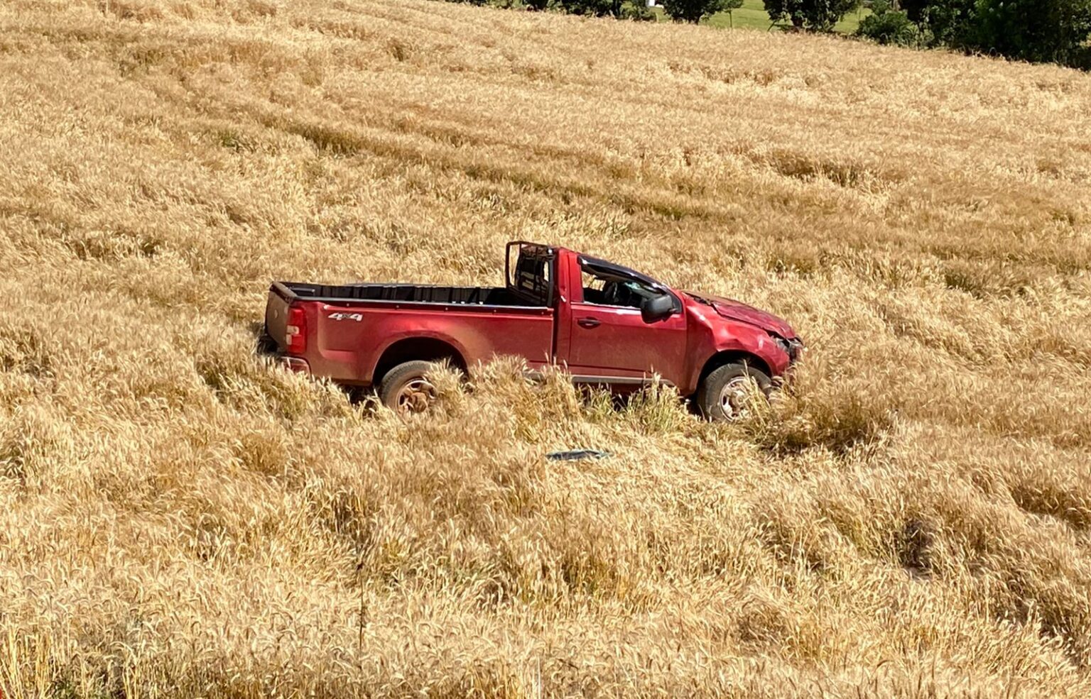 A caminhonete, uma S10, parou em meio a uma lavoura. Pelas informações repassadas pela corporação, quando chegaram no local do acidente as vítimas não estavam mais dentro do veículo, mas relataram que a criança estava na cadeirinha e a condutora utilizava o cinto de segurança.