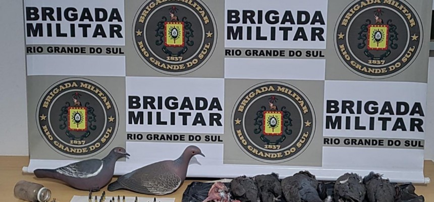 Na busca veicular foi aprendido um rifle cal.22, munições mesmo calibre e 14 animais silvestre que habitam na fauna brasileira (pombas), abatidas em caça, além de apetrechos usados para prática ilegal da caça.
