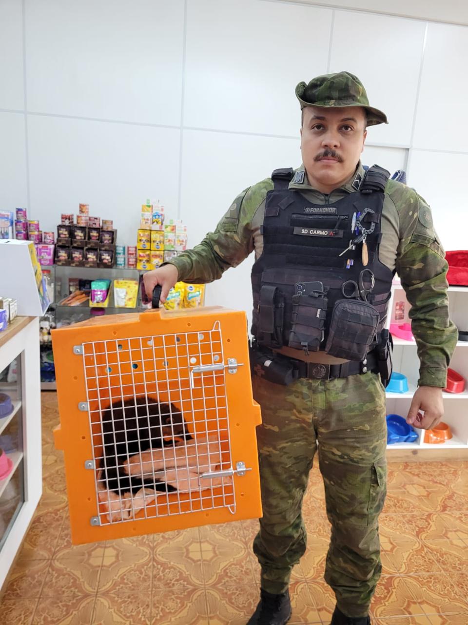 Nesta segunda-feira (29/04), a Brigada Militar, através da Patrulha Ambiental (Patram) de São José do Ouro, resgatou um Quati (Nasua nasua), em Machadinho.