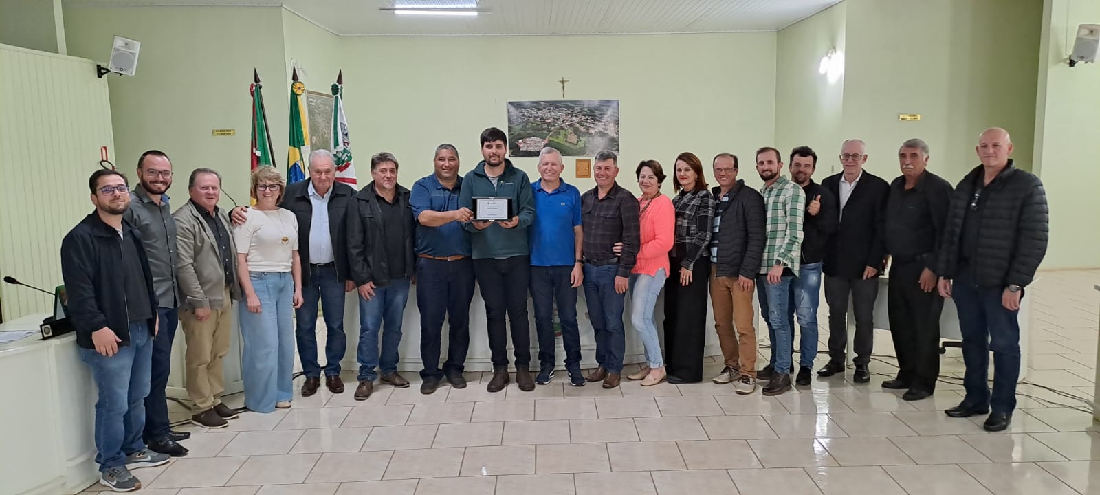 Na sequência, através da Lei Municipal N° 3.415/2023, os vereadores conferiram nesta sessão, homenagem ao escritório da EMATER, de Machadinho. A importante homenagem, foi realizada em reconhecimento aos 46 anos de trabalhos realizados, junto à comunidade machadinhense.