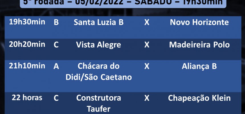 A quinta rodada, será no sábado, dia 05 de fevereiro, no SERC União.
