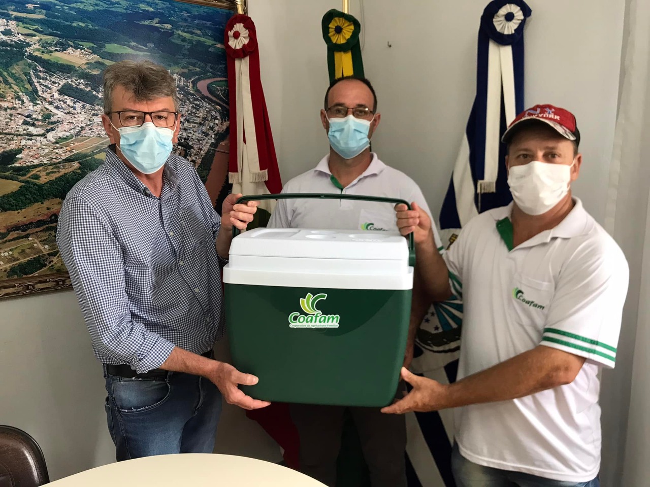 O encontro teve por objetivo apresentar ao Prefeito os produtos que são confeccionados pelas empresas ou Cooperativas em que a COAFAM entrega o leite.