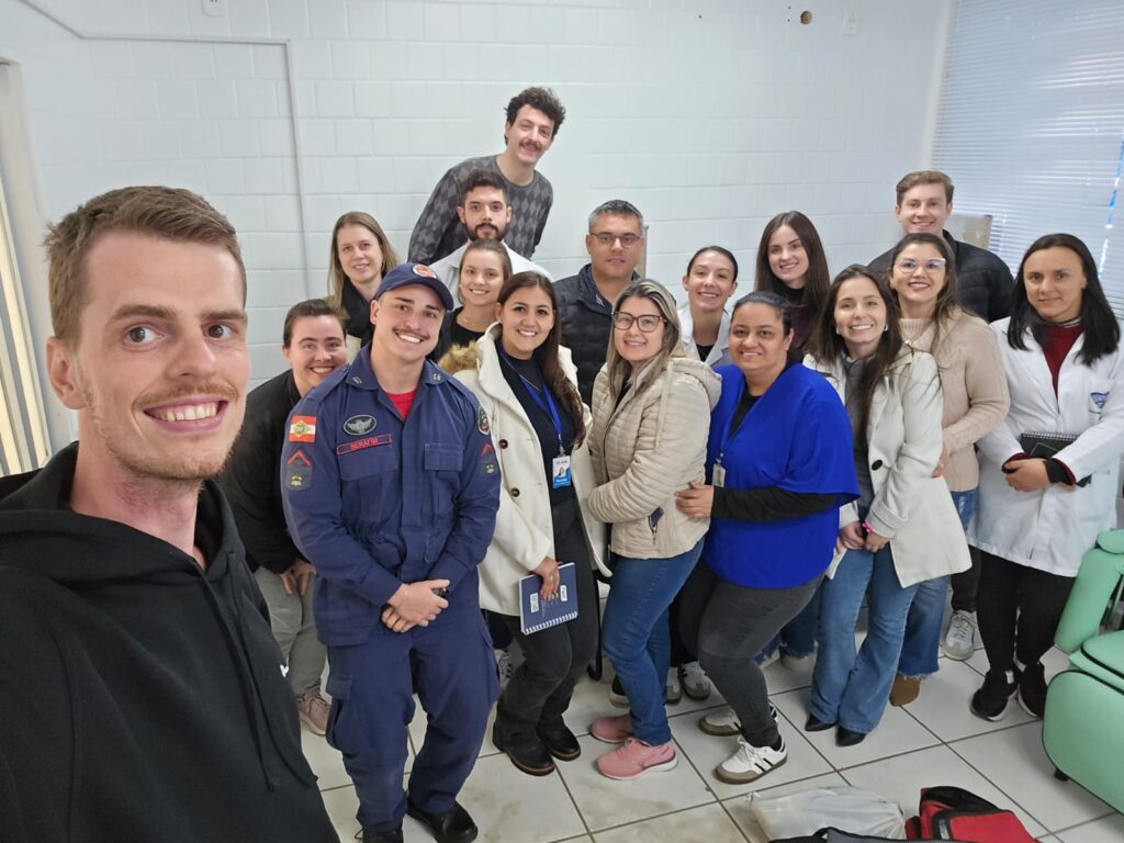 A capacitação foi ministrada pelo médico Dr. Kevin Timm Lutz, plantonista do Hospital Nossa Senhora das Dores, pelo Sargento Serafin, do Corpo de Bombeiros, e pelo enfermeiro Eduardo Janir de Souza, da UNOESC.