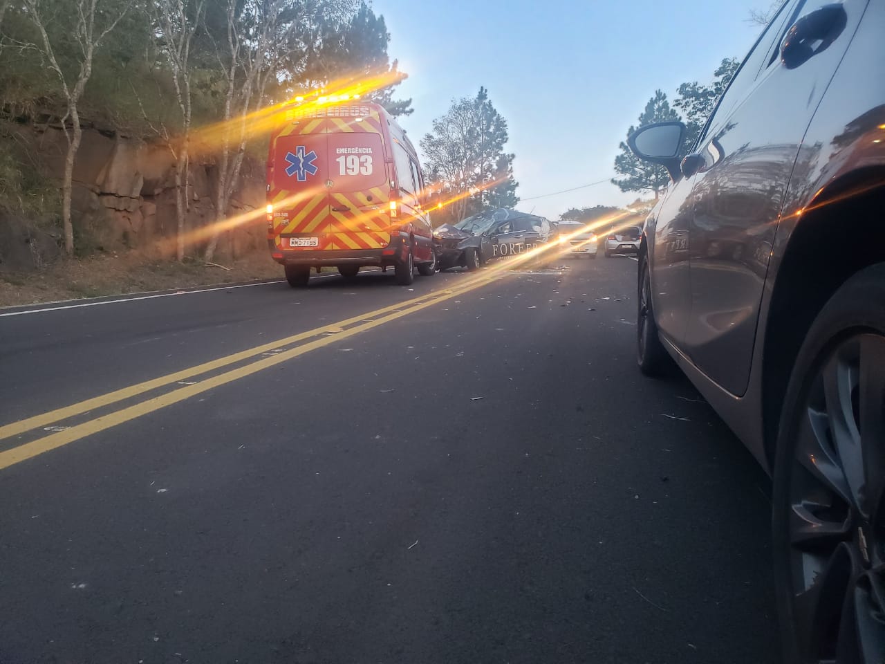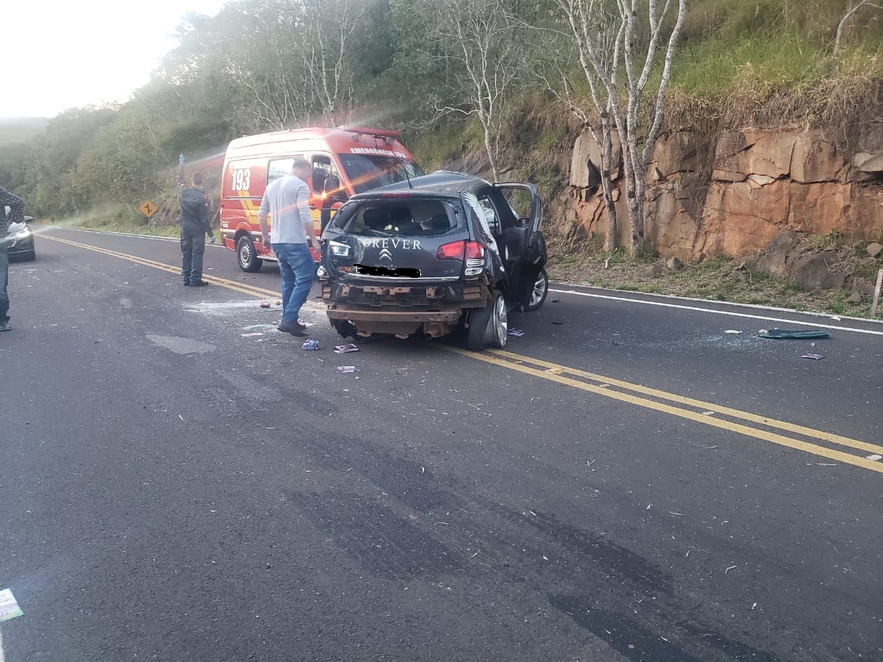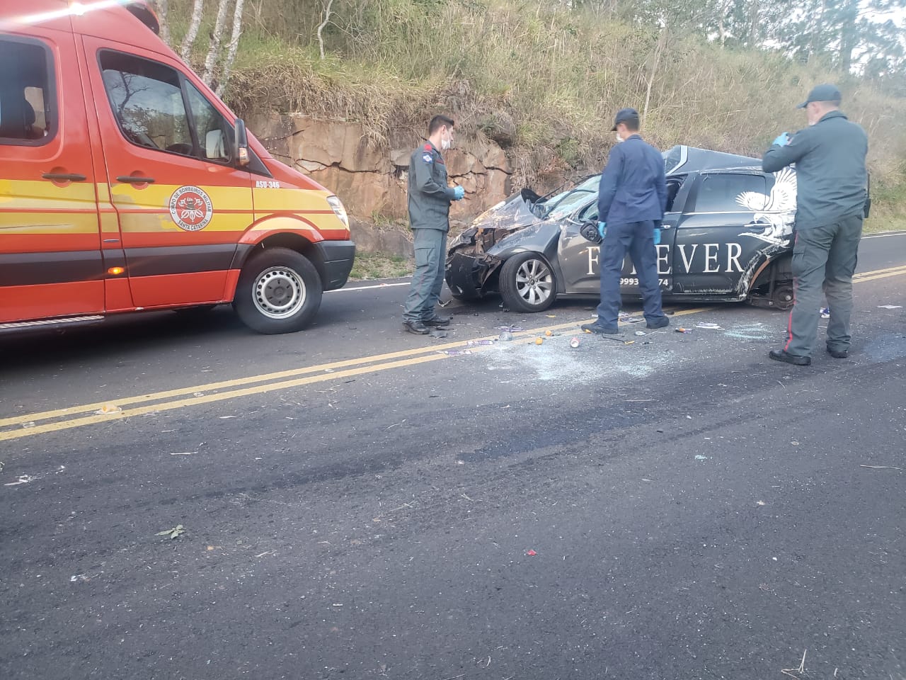 O fato, aconteceu próximo ao posto de fiscalização da SIDASC, perto da UHE Machadinho e envolveu um veículo Citroen c3, com duas pessoas em seu interior, mãe (aproximadamente 50 anos) e filho (5 anos).
