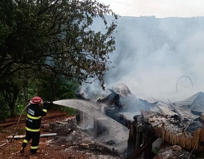 Os Bombeiros Voluntários de Machadinho, foram acionados para o combater um incêndio na localidade de Linha Ipiranga, Maximiliano de Almeida.