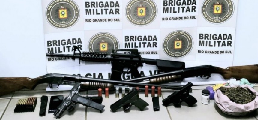 Diante das informações, as equipes do 4ºBPChq efetuaram novas buscas e diligências, localizando um verdadeiro arsenal bélico de armas e munições, bem como considerável estoque de drogas da facçao criminosa em guerra pelo domínio do território e exploração da atividade criminosa, que provocou a recente onda de violência no município e região.