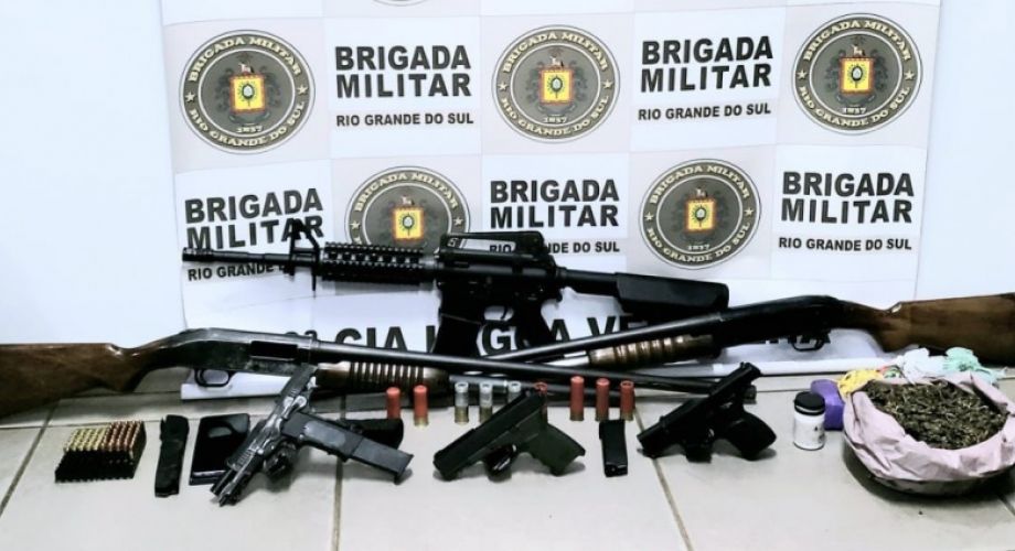 Diante das informações, as equipes do 4ºBPChq efetuaram novas buscas e diligências, localizando um verdadeiro arsenal bélico de armas e munições, bem como considerável estoque de drogas da facçao criminosa em guerra pelo domínio do território e exploração da atividade criminosa, que provocou a recente onda de violência no município e região.