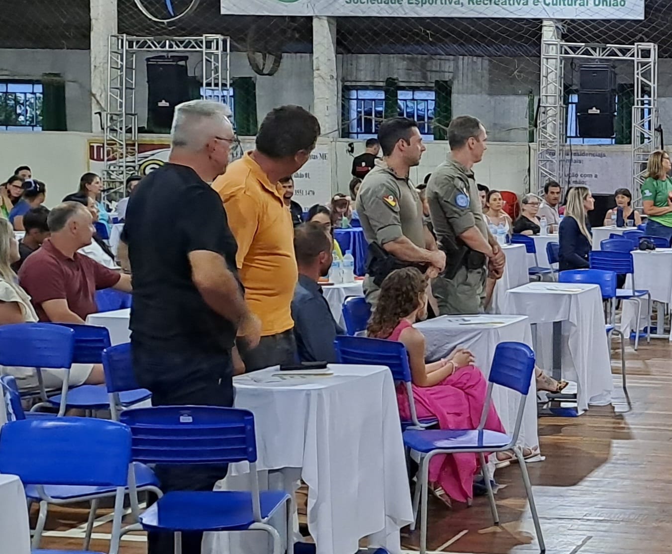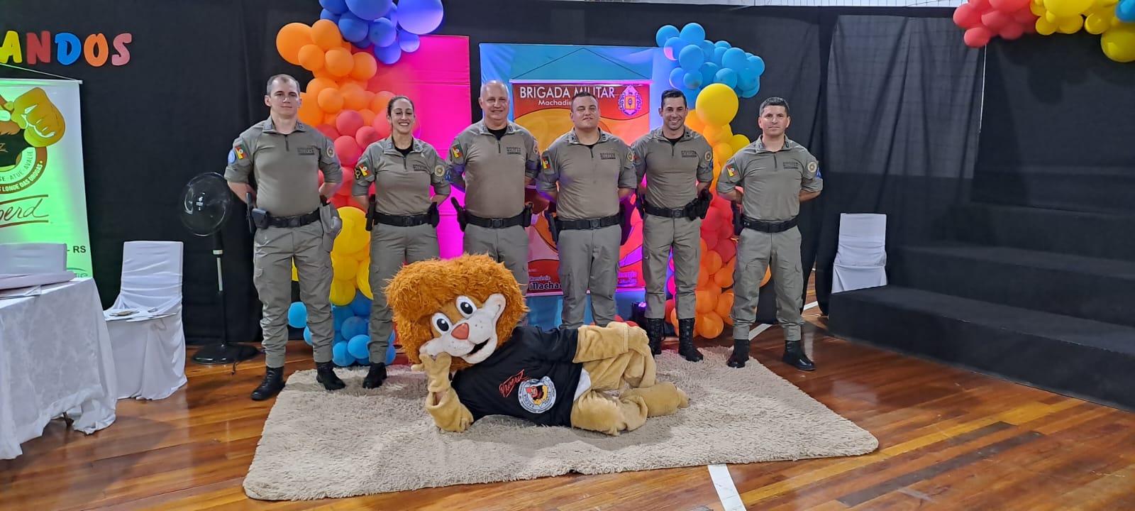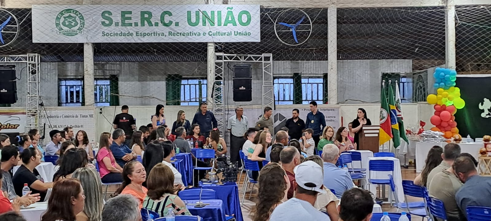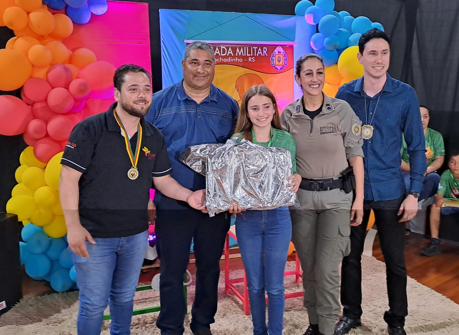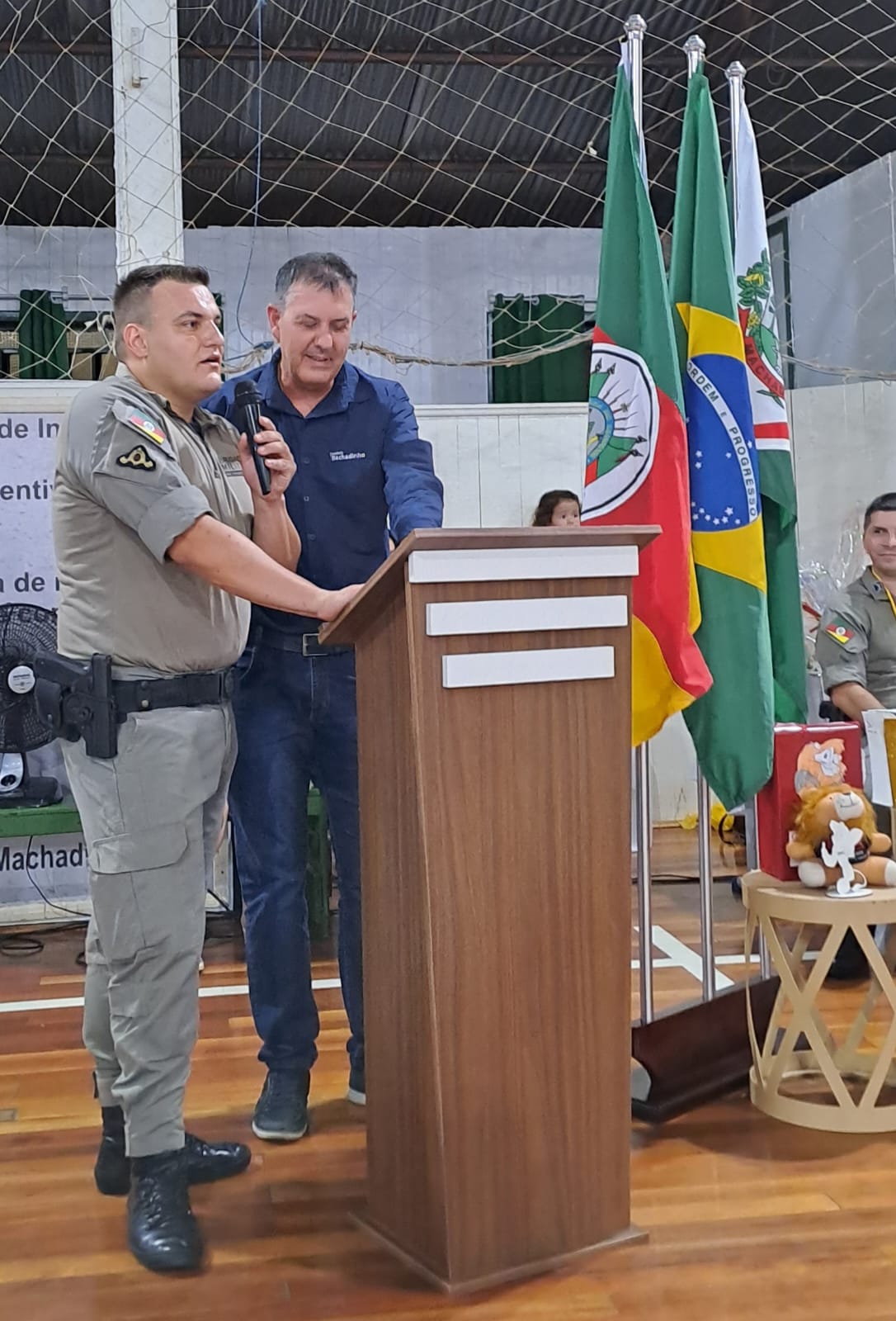 Na noite de quarta-feira, 13 de dezembro, o ginásio do Clube União, em Machadinho-RS, testemunhou a solene formatura do PROERD 2023. O evento contou com a presença de autoridades policiais e municipais, incluindo o Tenente-coronel Becker, comandante do 10º BPM (Vacaria), instrutores, familiares, formandos e a comunidade local.