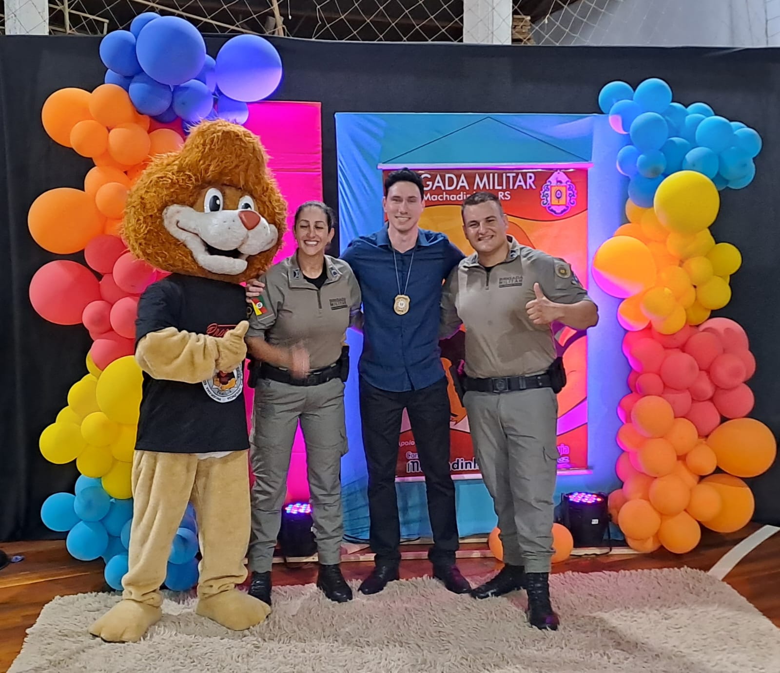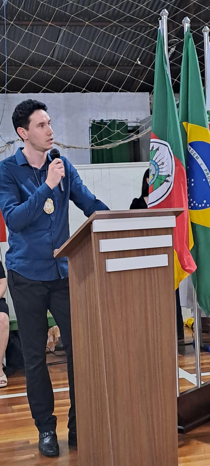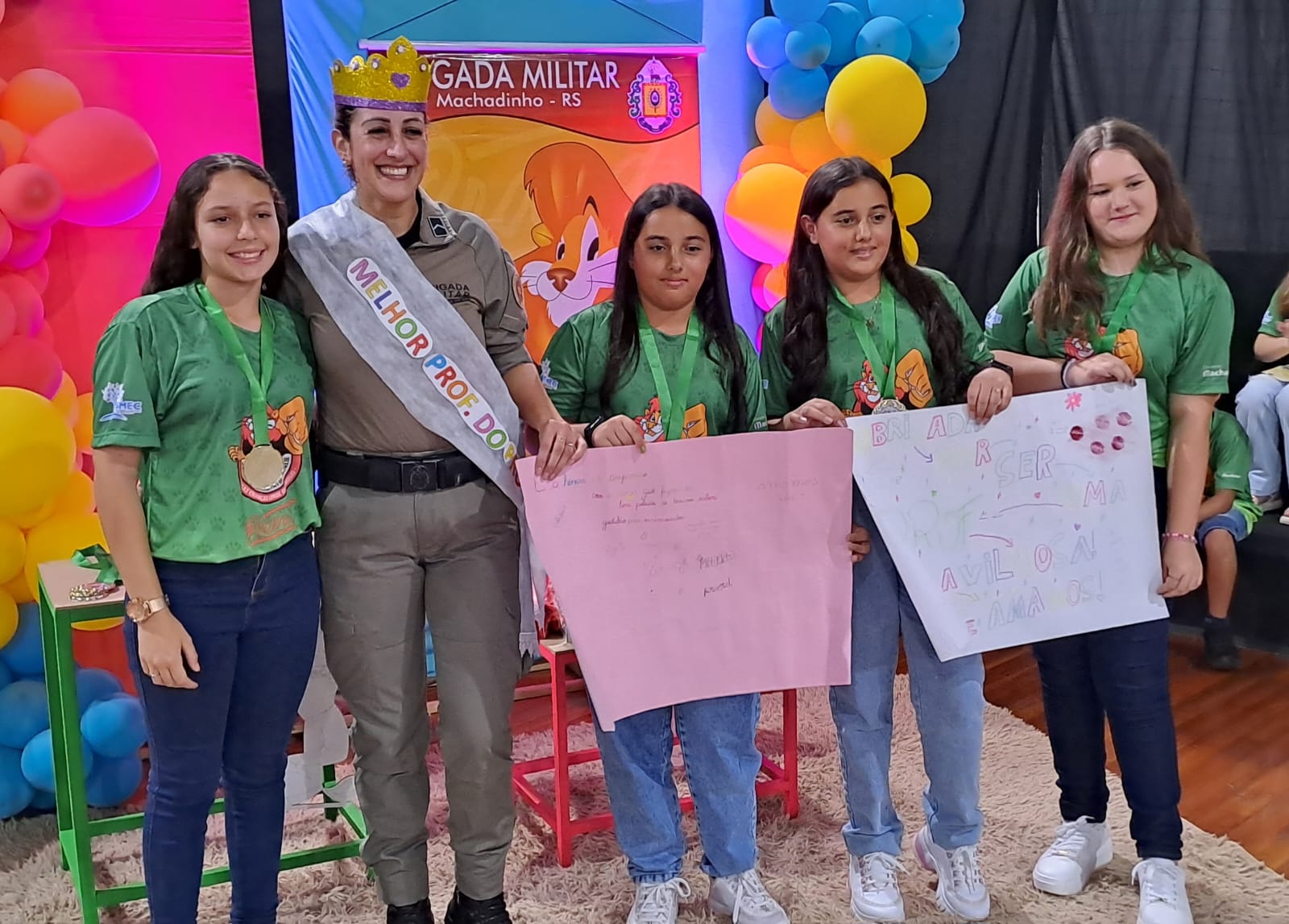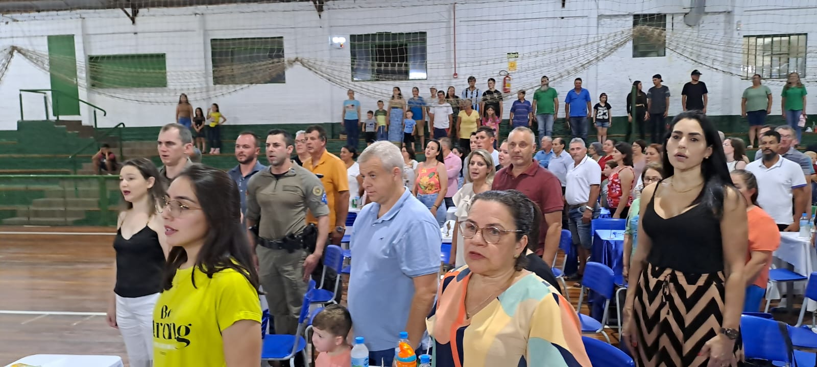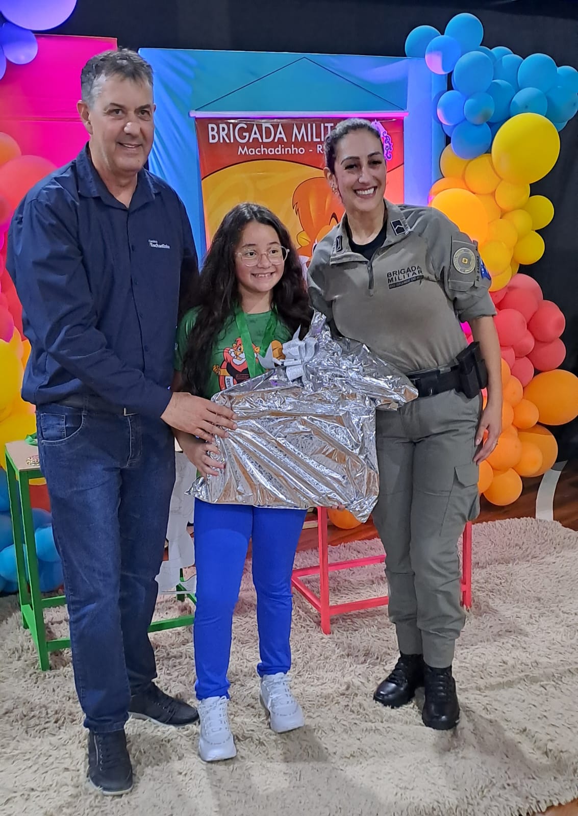 Na noite de quarta-feira, 13 de dezembro, o ginásio do Clube União, em Machadinho-RS, testemunhou a solene formatura do PROERD 2023. O evento contou com a presença de autoridades policiais e municipais, incluindo o Tenente-coronel Becker, comandante do 10º BPM (Vacaria), instrutores, familiares, formandos e a comunidade local.