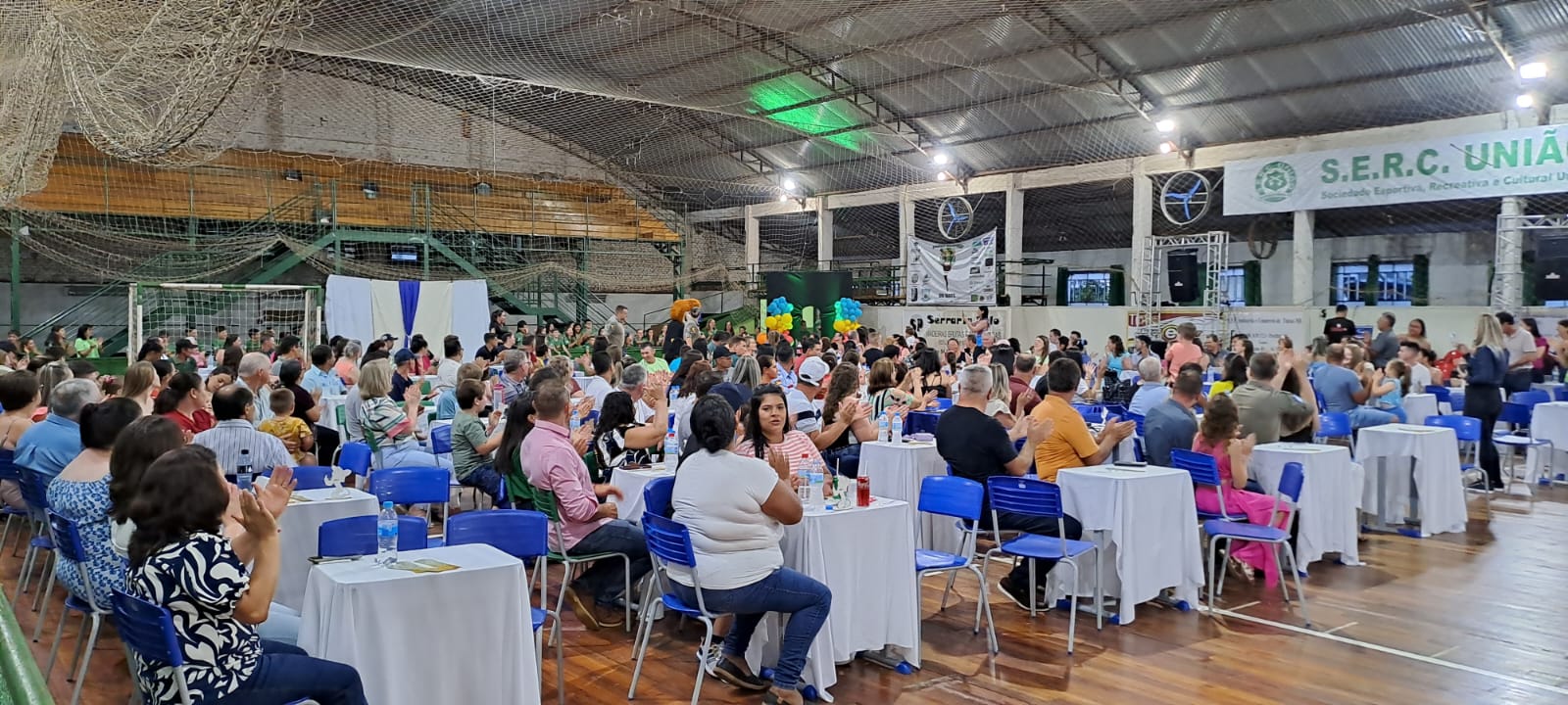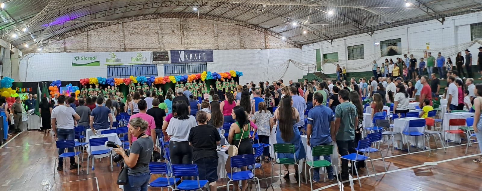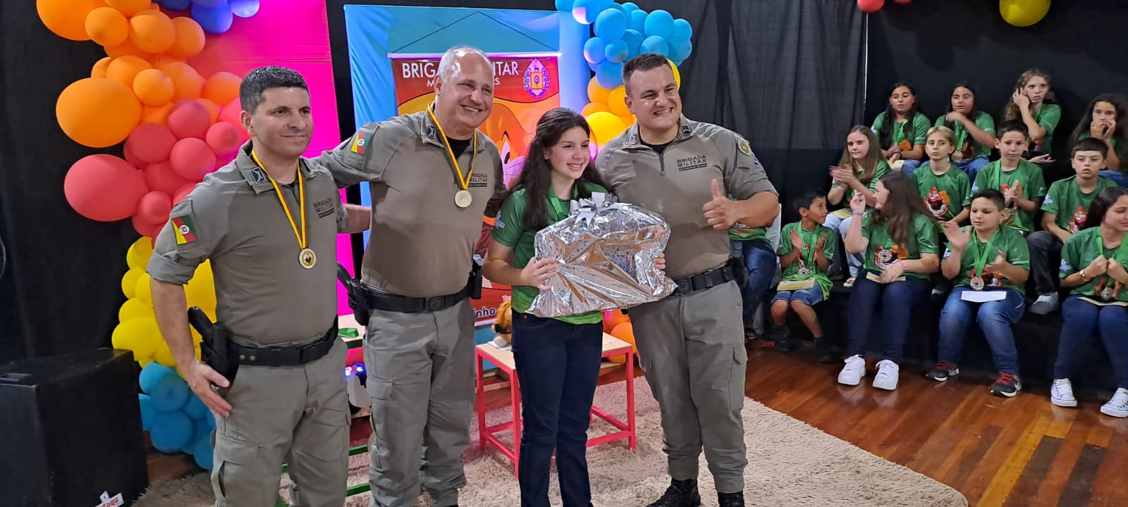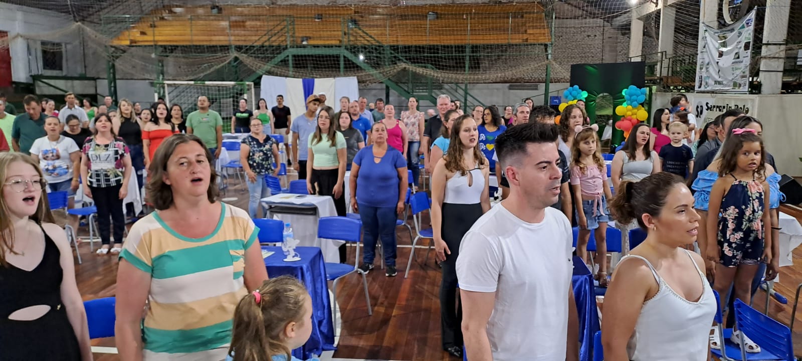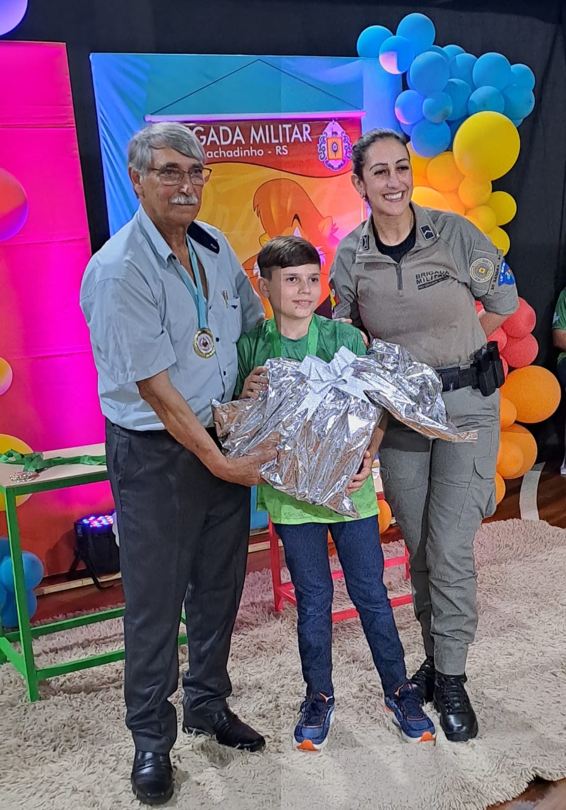 Na noite de quarta-feira, 13 de dezembro, o ginásio do Clube União, em Machadinho-RS, testemunhou a solene formatura do PROERD 2023. O evento contou com a presença de autoridades policiais e municipais, incluindo o Tenente-coronel Becker, comandante do 10º BPM (Vacaria), instrutores, familiares, formandos e a comunidade local.