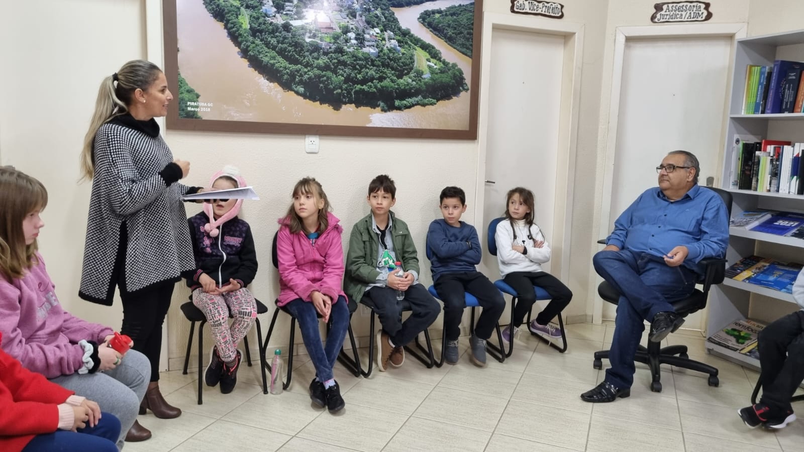 CHEFE DO EXECUTIVO DE PIRATUBA RECEBE GRUPO DE ESTUDANTES E SATISFAZ CURIOSIDADE DA GAROTADA EM MANHÃ DE CONVERSA