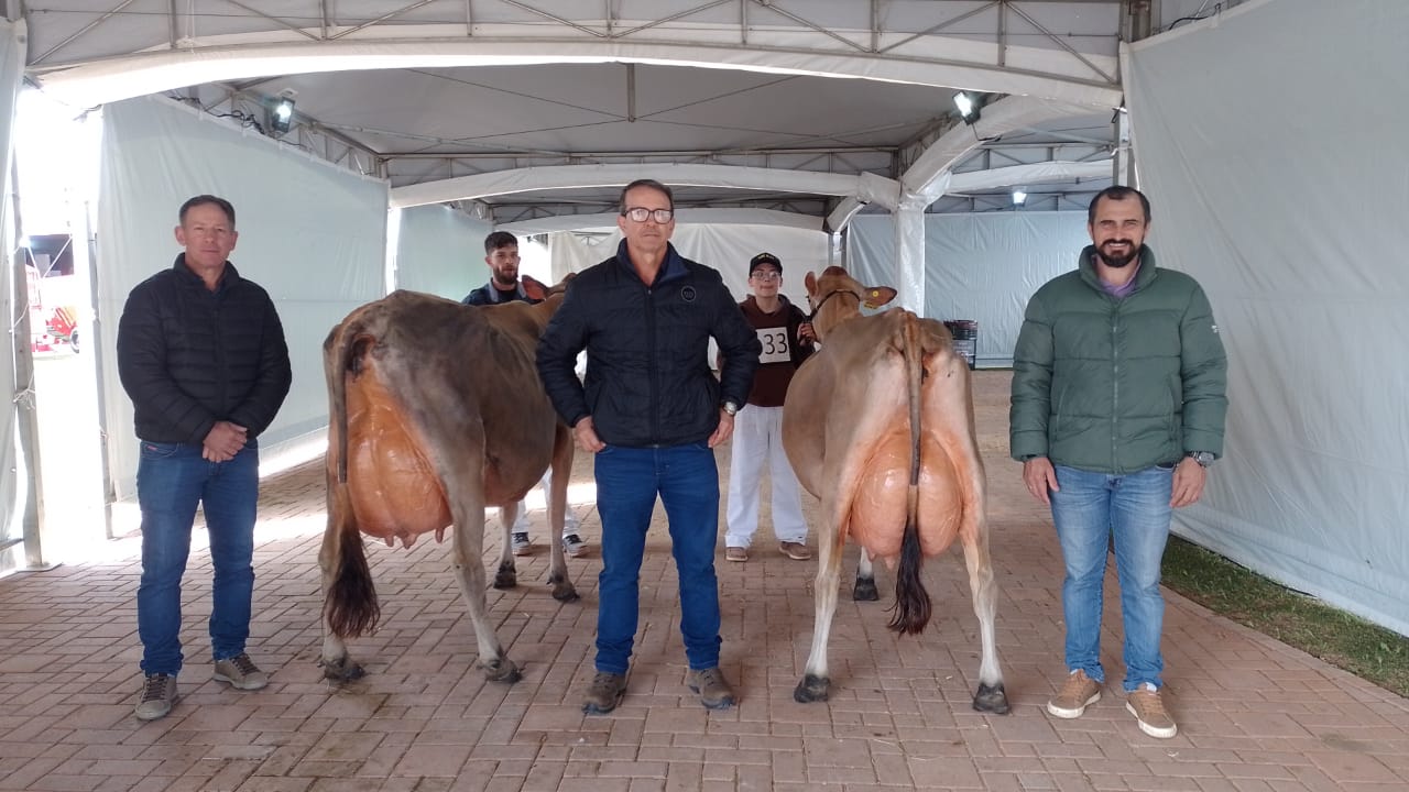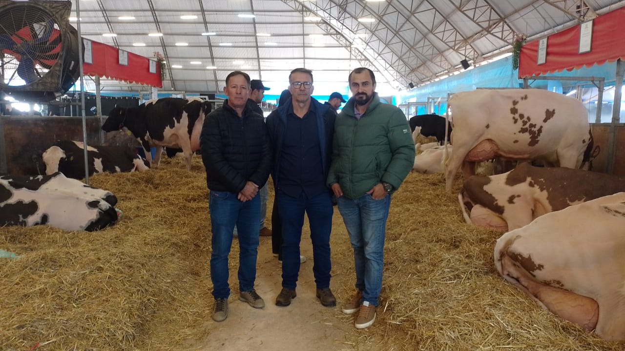 O vice-prefeito de Piratuba, Altair de Azeredo, o secretário de Agricultura, Eloir Bergamo, e o engenheiro agrônomo da secretaria, Rafael Gotardo, estão participando da Agroleite, uma das mais importantes feiras do setor leiteiro do Brasil.