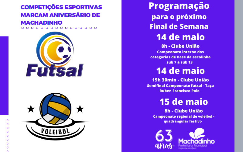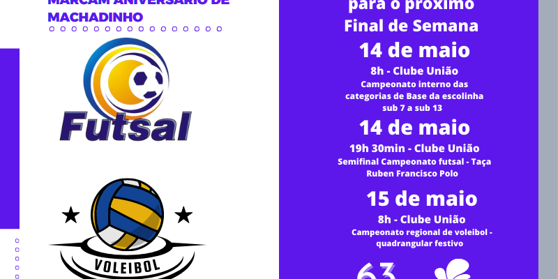 As diferentes modalidades esportivas são atrativos cheios de envolvimento em Machadinho. Anualmente o Campeonato Municipal de Futsal ganha seu espaço e a participação de atletas e da torcida resulta em um grande e estimado evento. Aliado a isso, categorias de base e o voleibol feminino viverão momentos de integração e dispostas neste mês de maio.