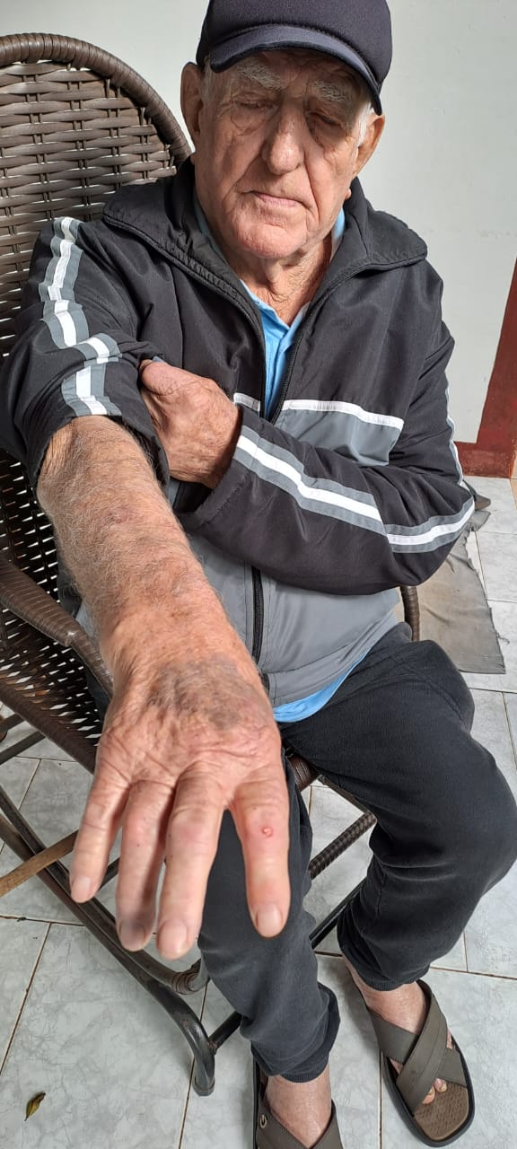 Seu Nemezio, ficou com ferimentos. Ele e a filha relataram que enquanto imobilizada, antes da chegada da polícia, a mulher ainda afirmava que iria voltar.