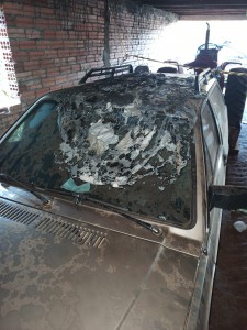 Trata-se de uma casa mista, sendo o porão (aberto) de material, e a parte de cima, em madeira. A Parati, estava guardada (coberta por uma lona plástica) no porão e os dois idosos estavam dormindo no andar de cima. Por sorte, o fogo queimou a lona e não vingou. Acabou apagando por si. Este fato poderia ter se tornado uma tragédia, pois, certamente atingiria a casa.
