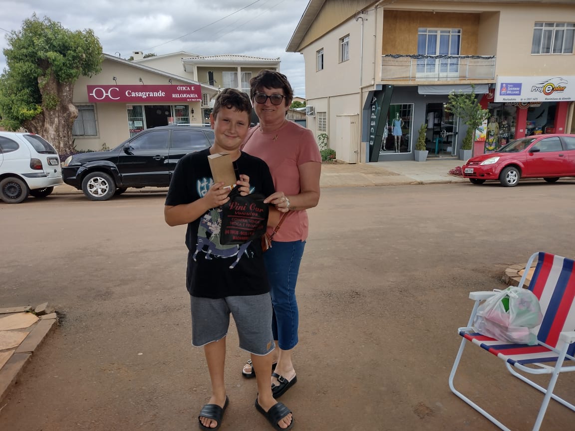 Algumas crianças já retiraram seus prêmios, confira alguns registros: