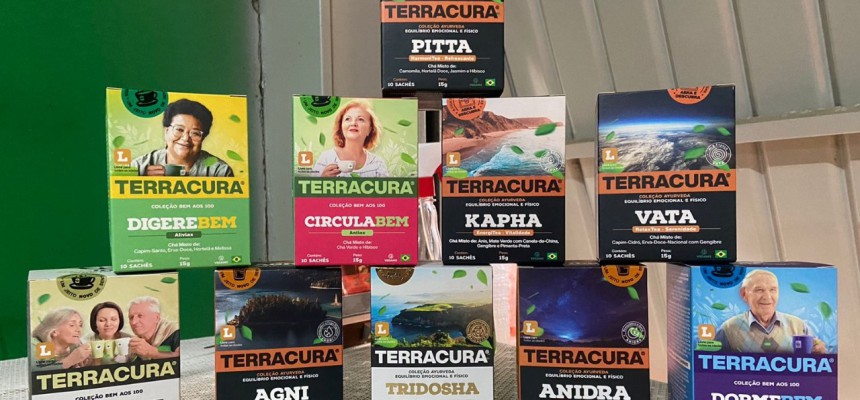 Agora para somar, chegaram os lançamentos: CHÁ BRANCO e a linha TERRACURA. A linha Terracura é bem grande, com chás para idosos, adultos, crianças e “pets”.