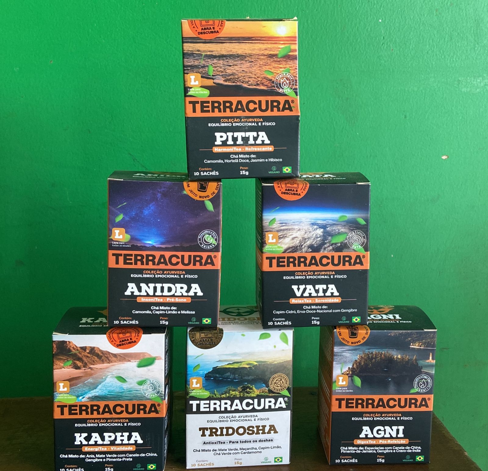 Já para o equilíbrio emocional e físico, os novos: Vata, Kapha, Agni, Pitta, Anidra e Tridosha.