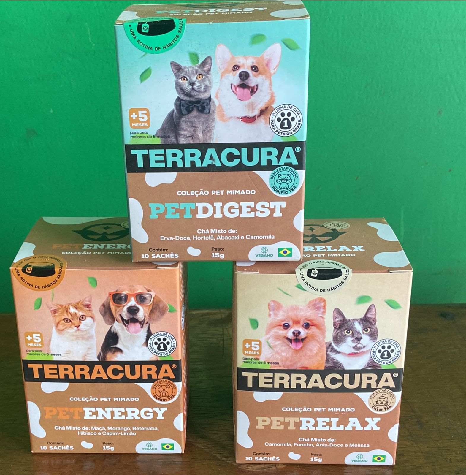 É isso mesmo, com base em estudos e testes, está aprovada a mais nova linha de chás para pets. E os cães e gatos estão adorando, trata-se do Pet Digest, Pet Relax e do Pet Energy. Faça o teste e comprove!