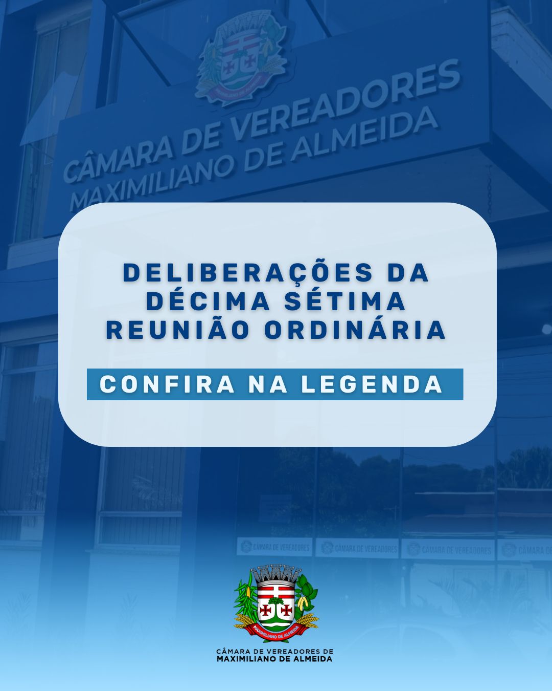 Deliberações da 17ª Reunião Ordinária da Câmara de Vereadores de Maximiliano de Almeida