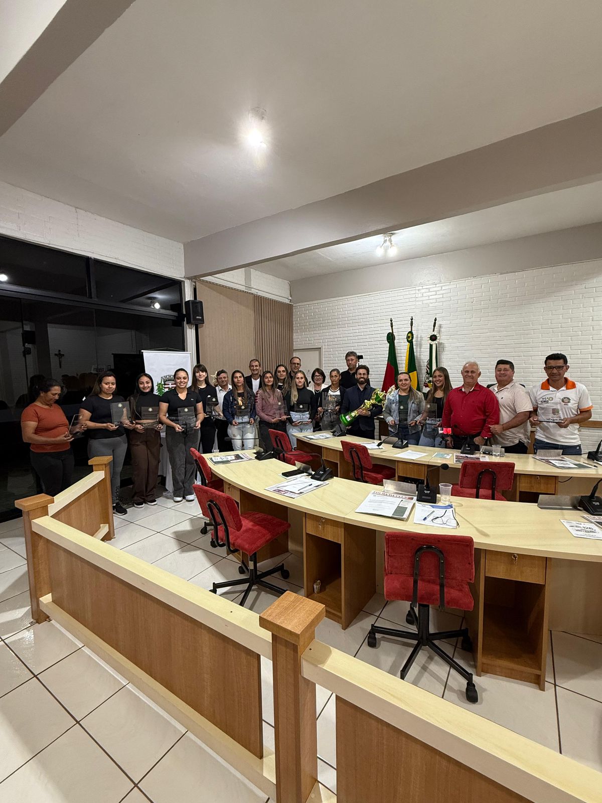 A Câmara de Vereadores de Maximiliano de Almeida realizou, na última quarta-feira, 12 de novembro, a 21ª Reunião Ordinária do ano de 2025, iniciando seus trabalhos com um momento especial de reconhecimento público às atletas e à equipe técnica de futsal feminino de Maximiliano de Almeida.